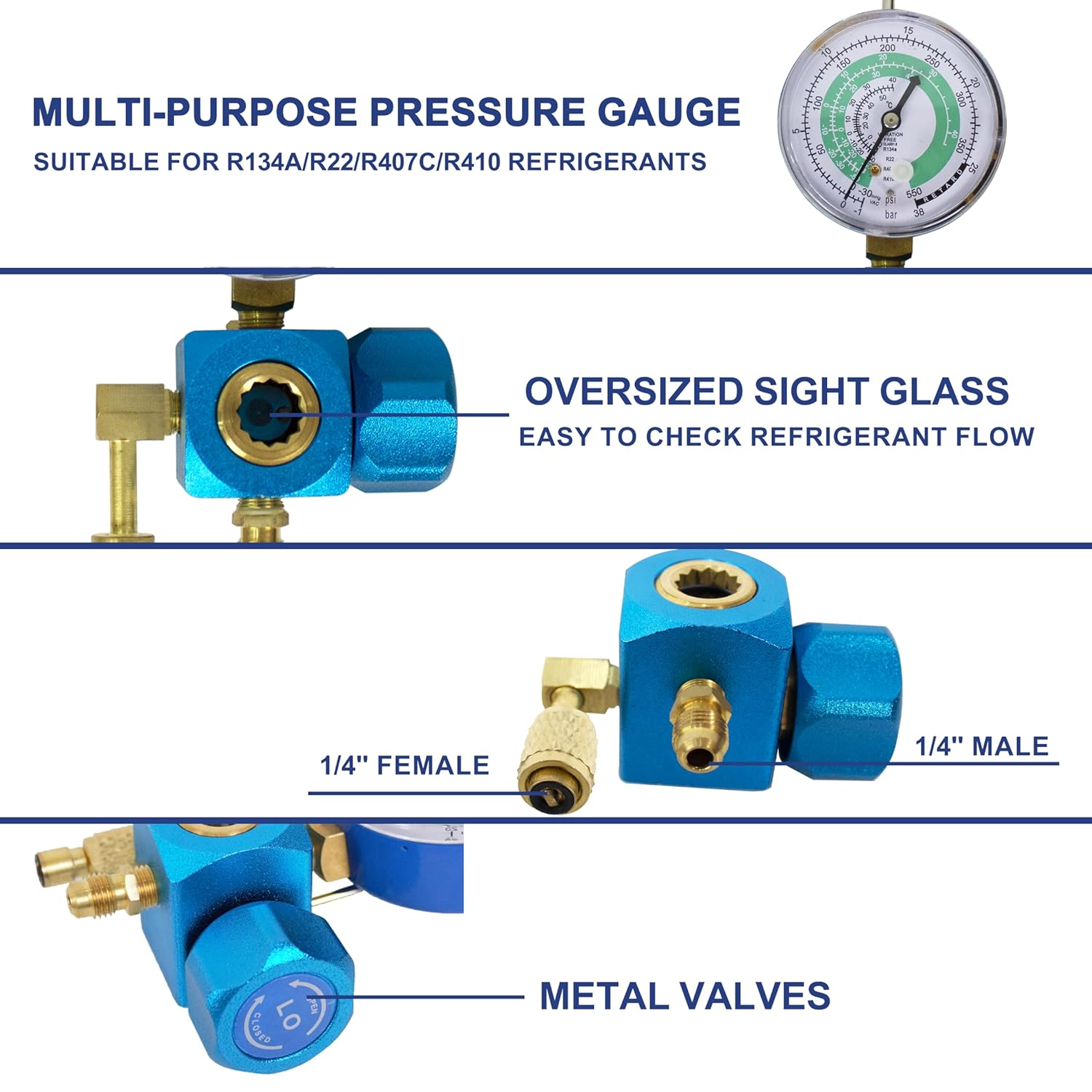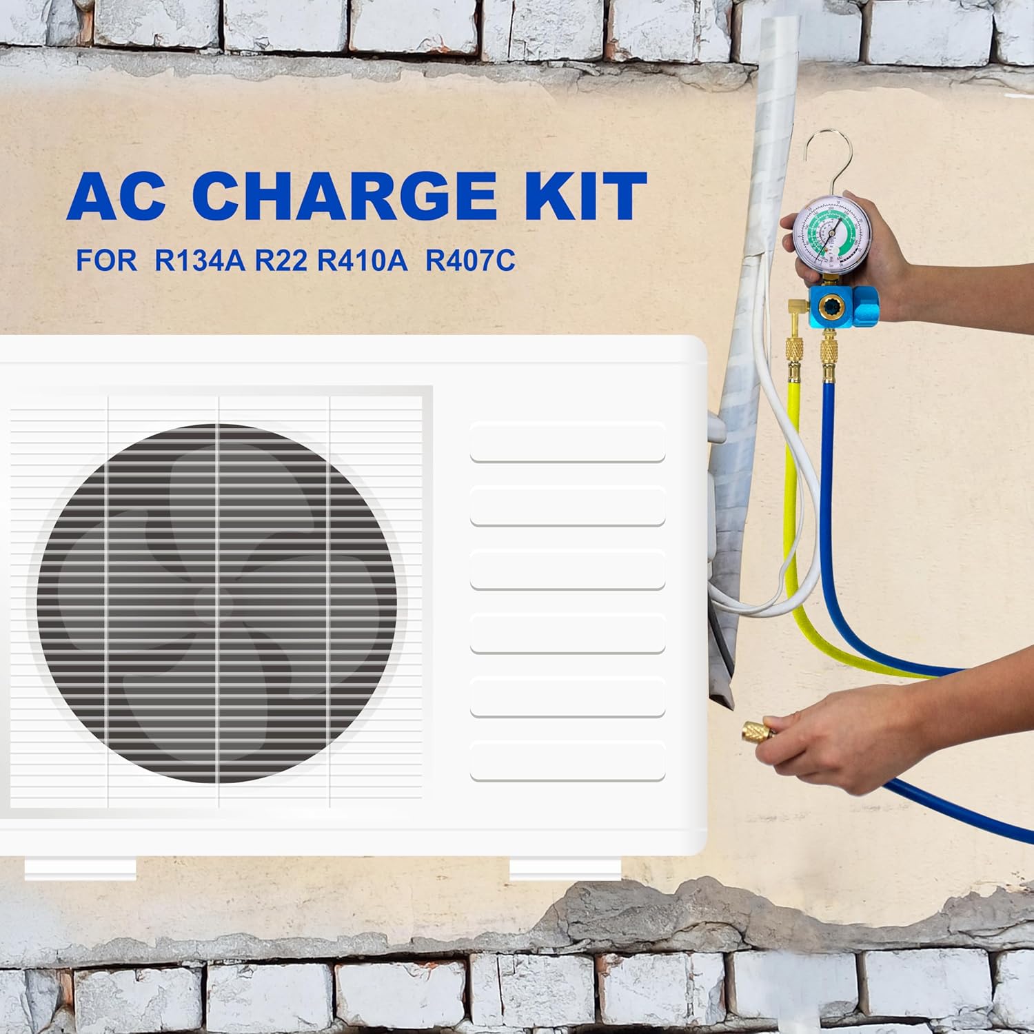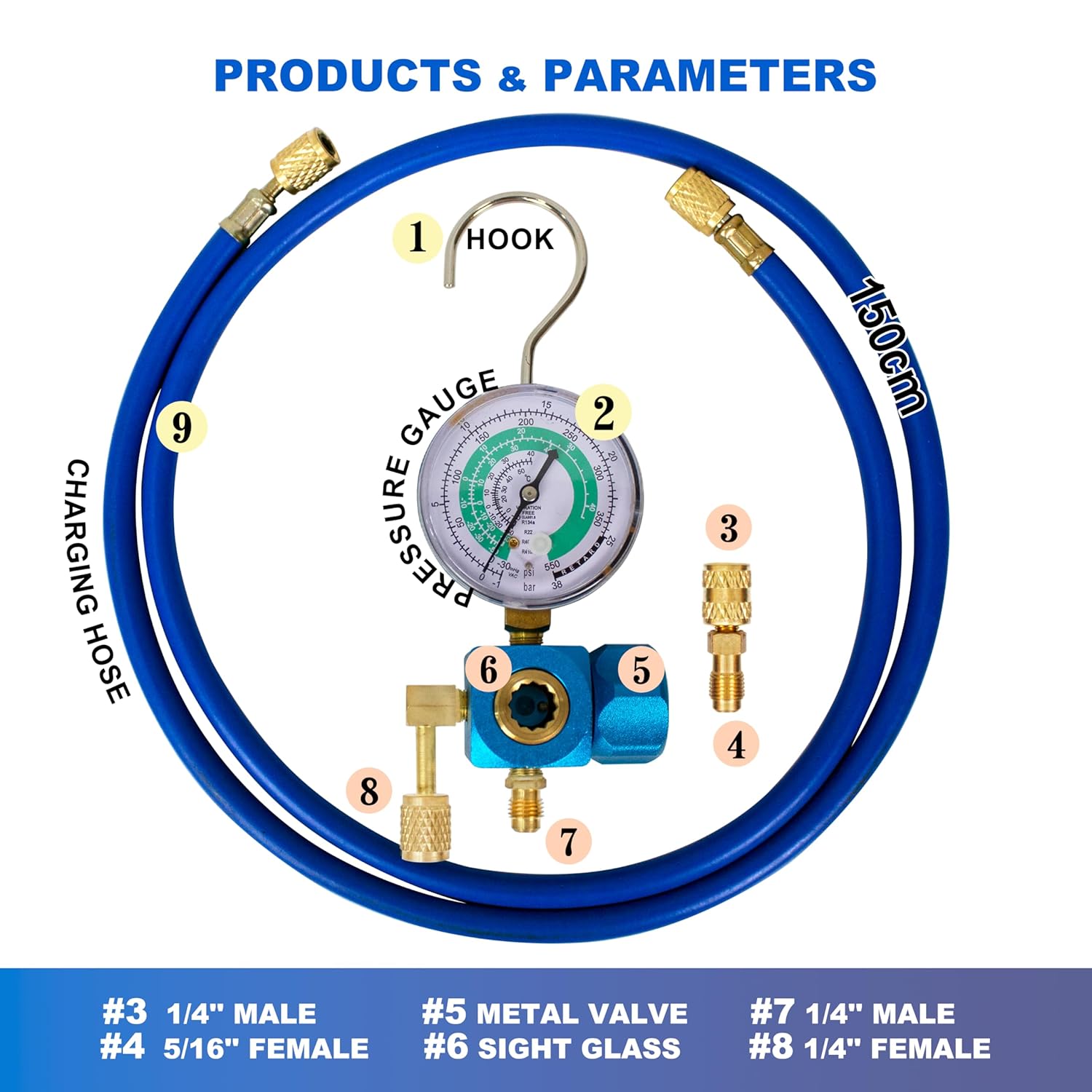 BACOENG Set di Strumenti per Il Condizionamento del Refrigerante con Tubo e Gancio per GAS REFRIGERANTE R410a R32 R407c R134A