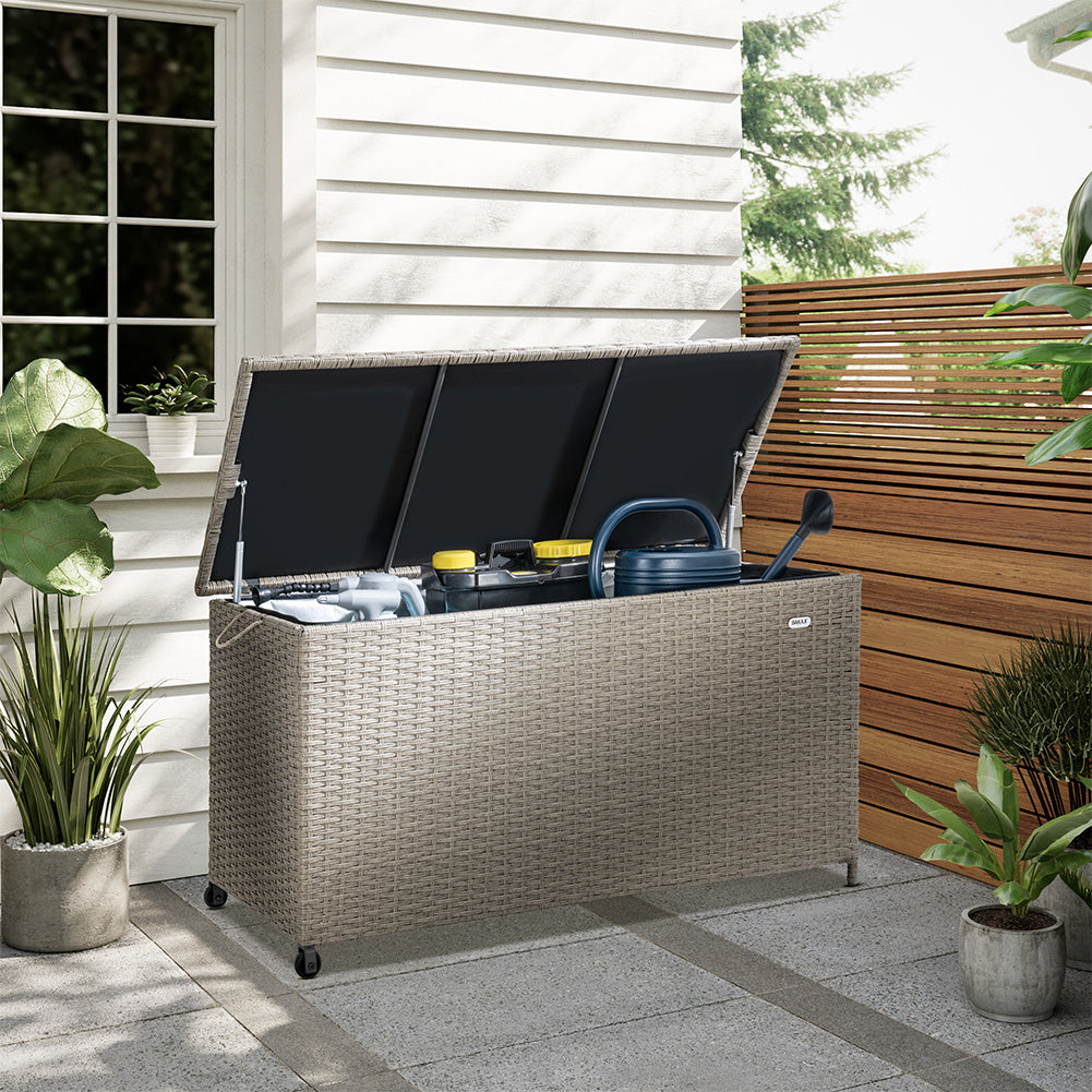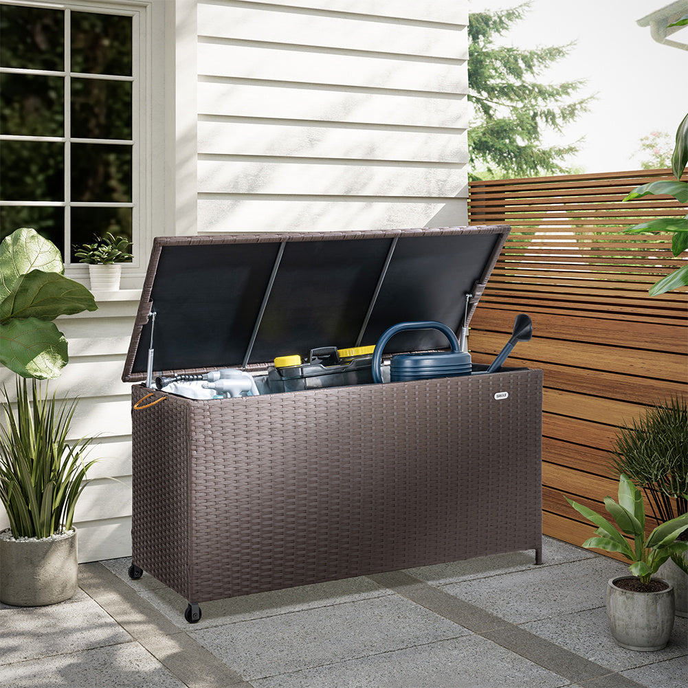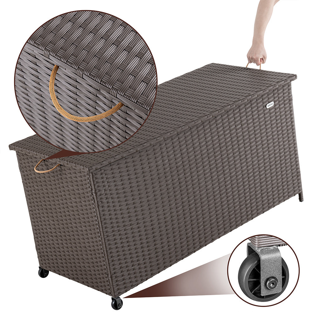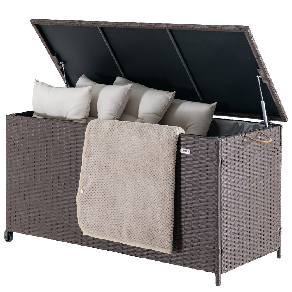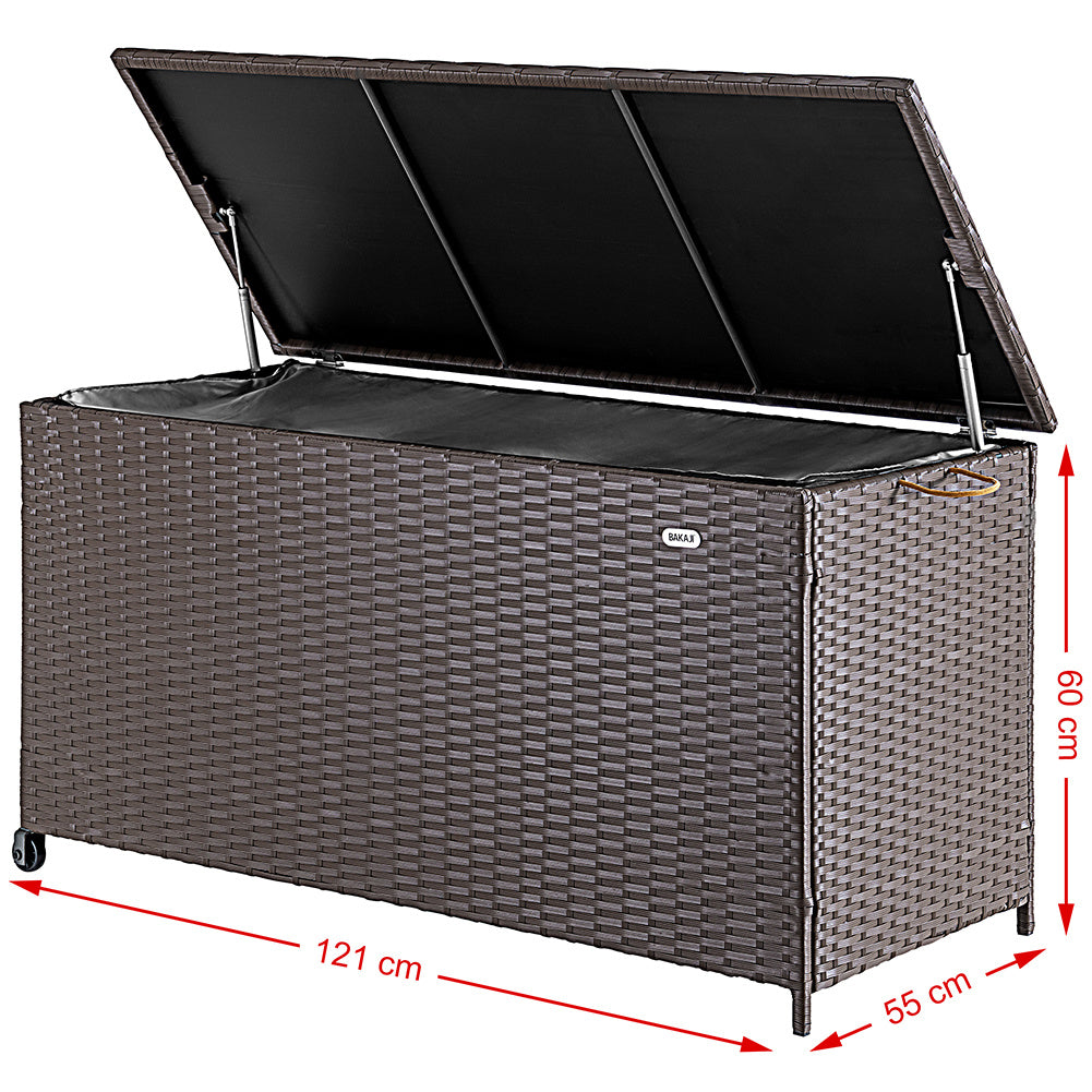 BAKAJI Cassapanca da Giardino in Poly Rattan da 420 Litri, Scatola Esterna Impermeabile Resistente ai Raggi UV, Cassapanca XXL con Ruote per il Trasporto e Maniglia, 121 x 55 x 60 cm