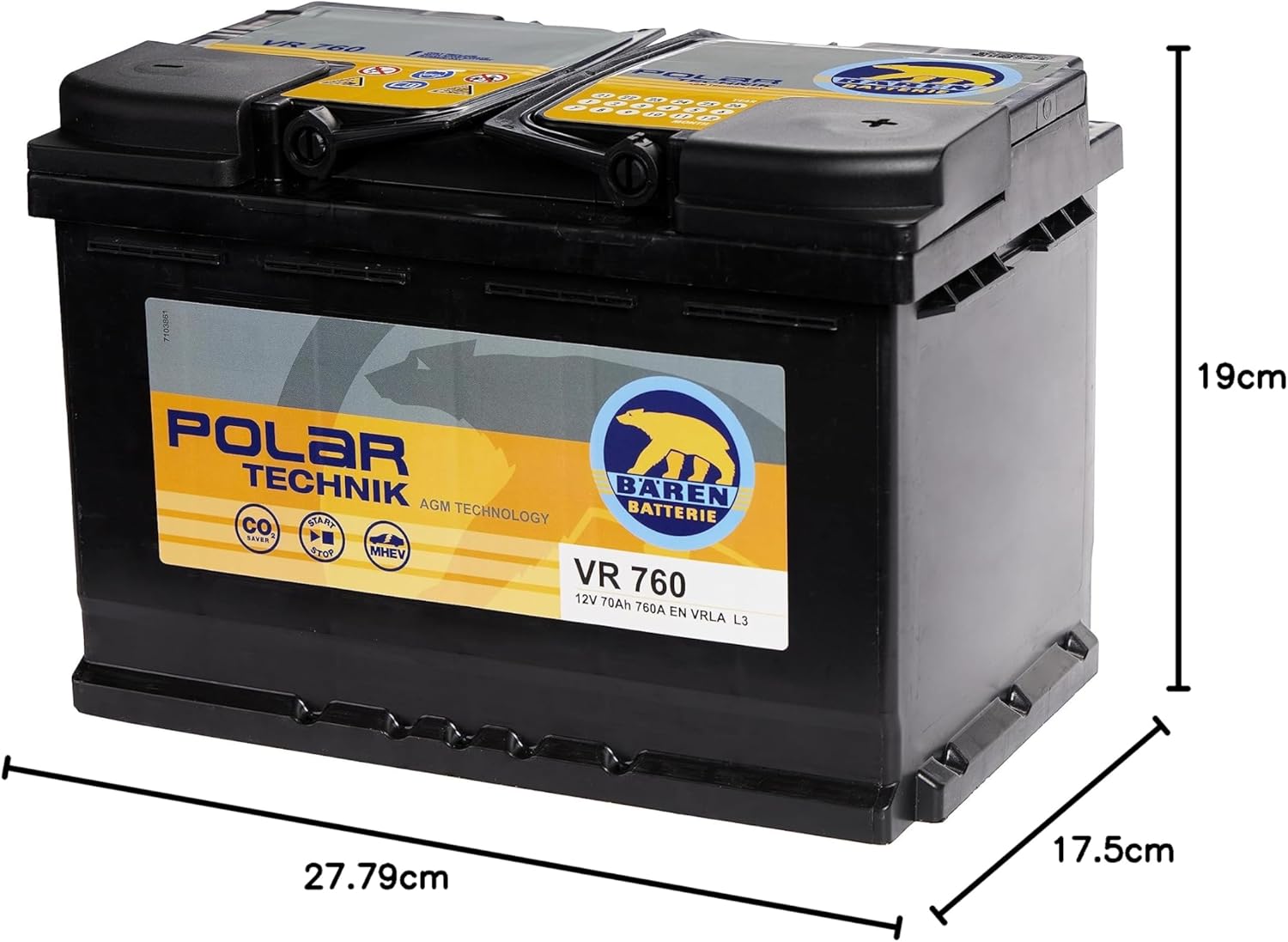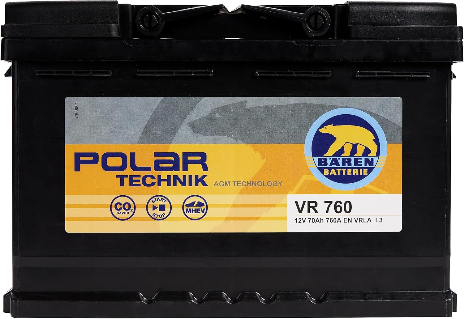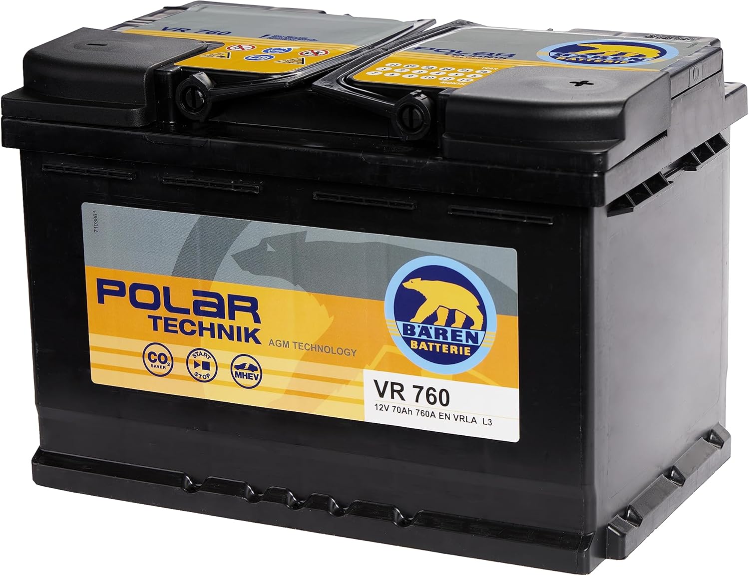 Baren Batteria Auto AGM L3 VR 760 12V 70Ah 760 A, Polar Technik, Adatta per Veicoli con sistema Start&Stop, Estrema Resistenza ai Cicli di Carica e Scarica