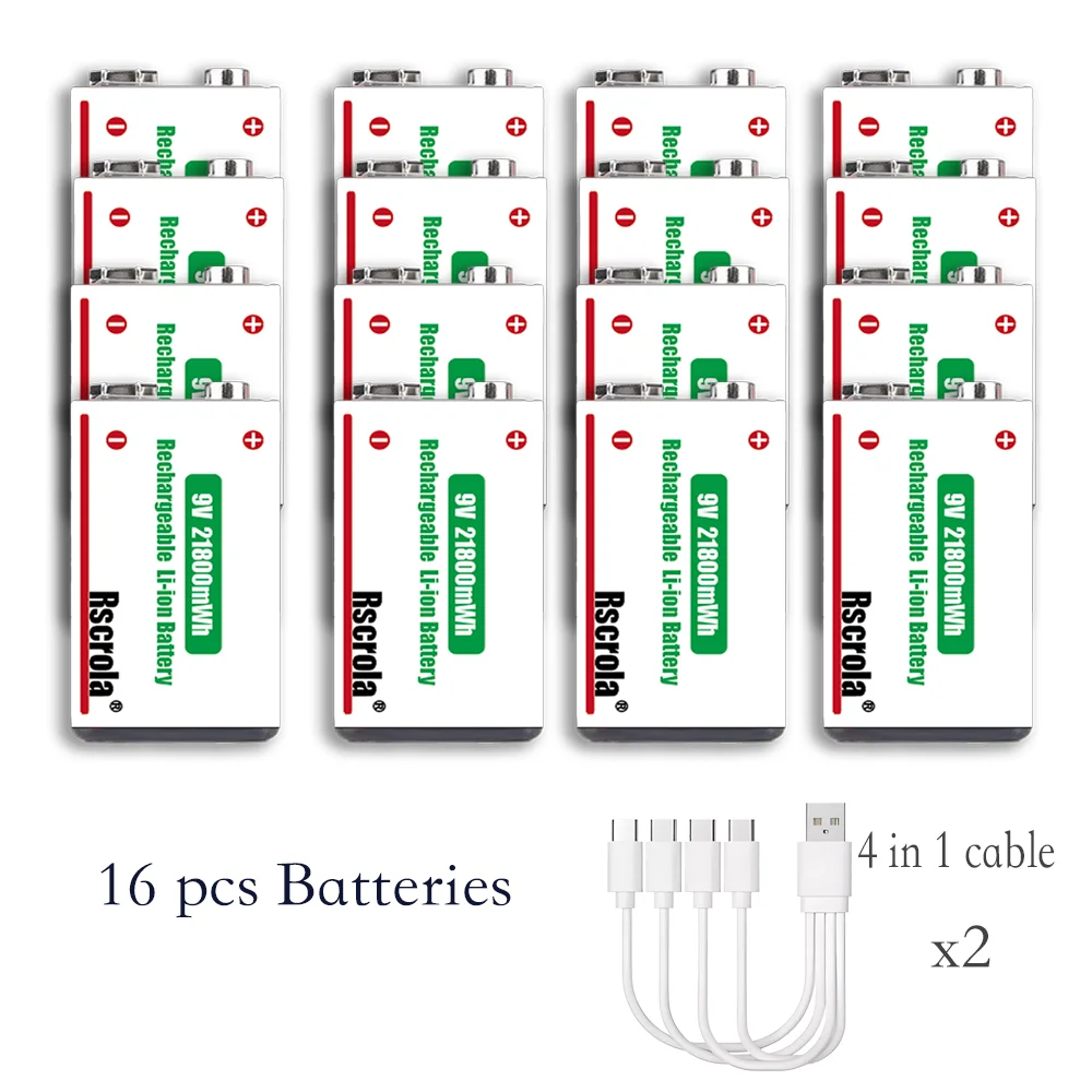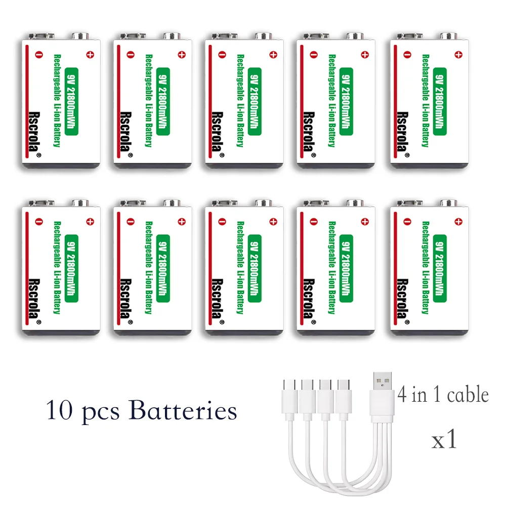 Batteria ricaricabile agli ioni di litio da 9 V a lunga durata 21800 mWh ad alta capacità per pedale rilevatore di fumo per microfono per chitarra con cavo