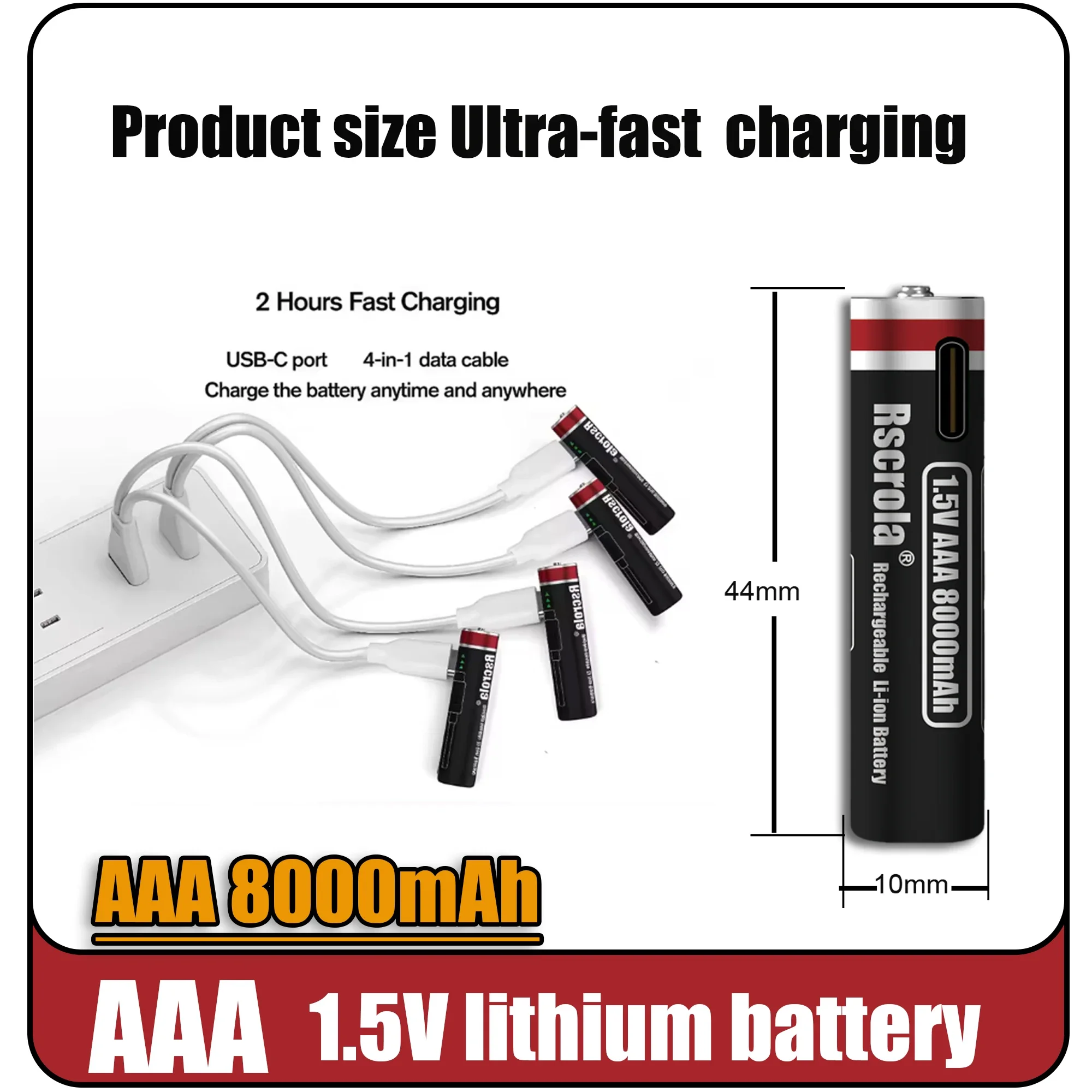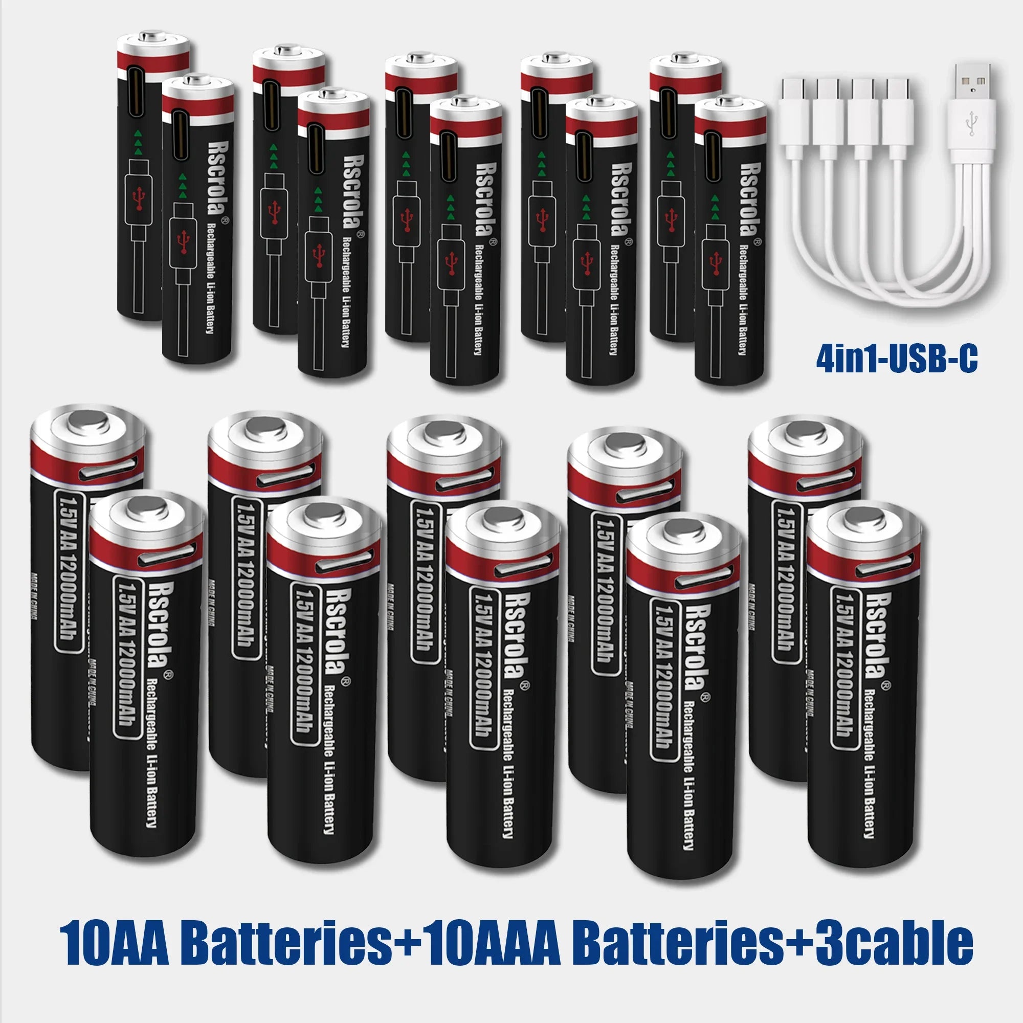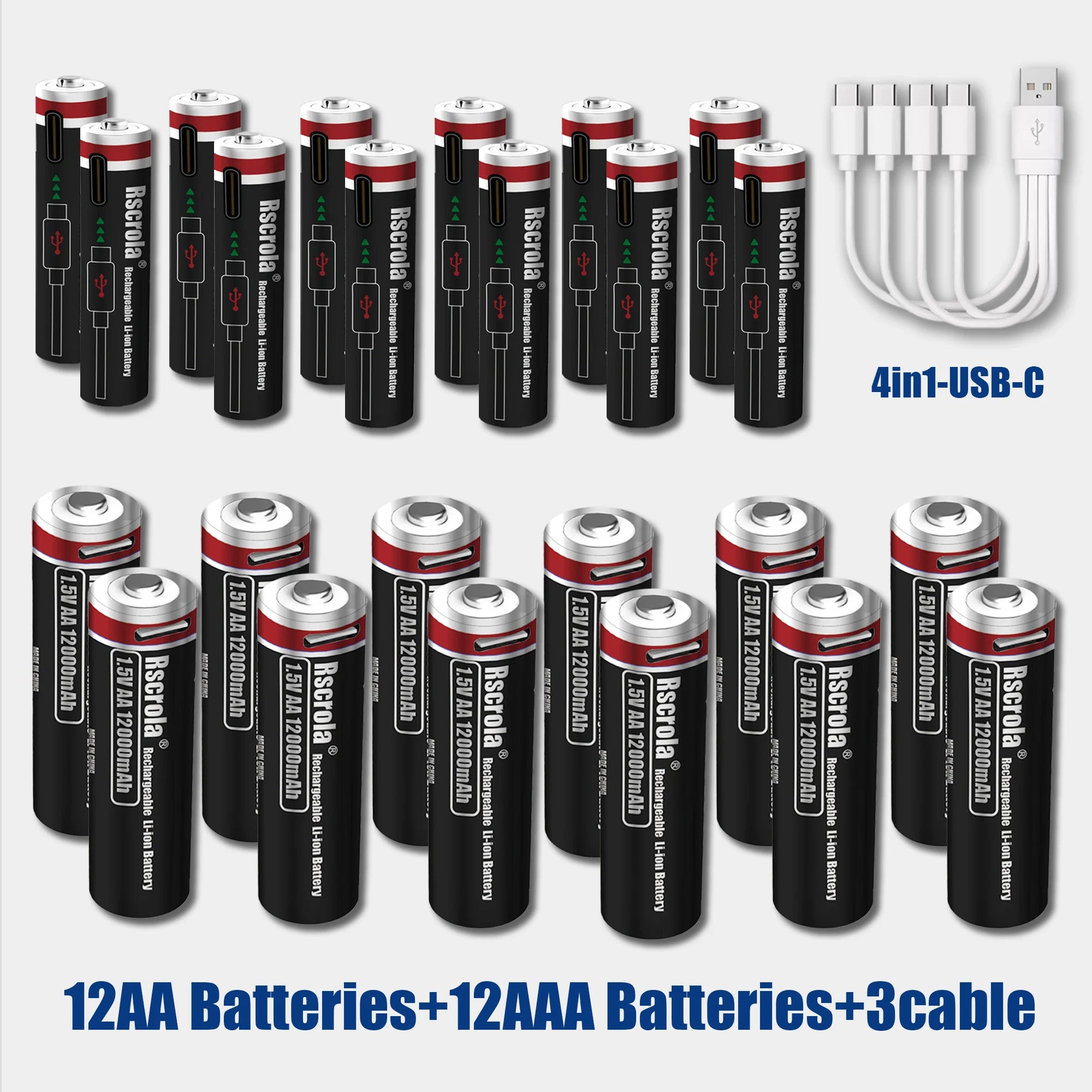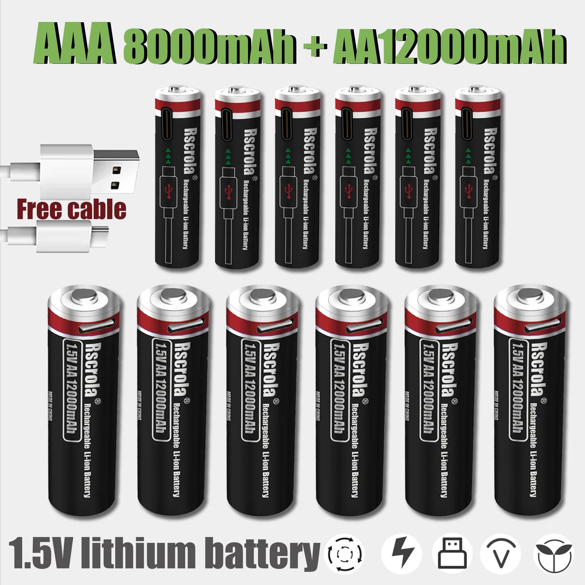 Batterie ricaricabili ad alta capacità AA12000mAh AAA 8000mAh Batterie ricaricabili AA agli ioni di litio Batteria AAA con cavo USB-C