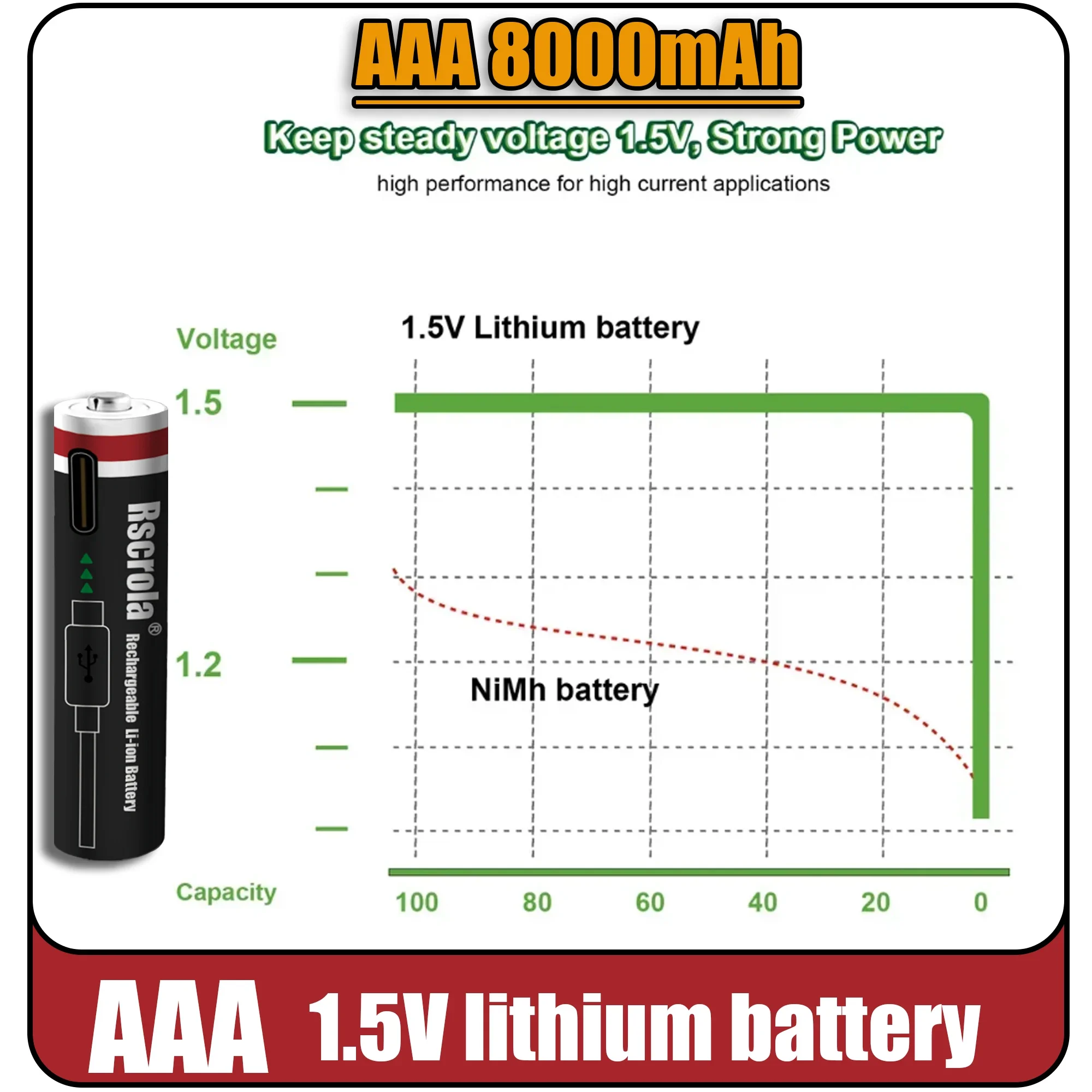 SPECIFICATIONSBatteria sostitutiva: NoCapacità nominale: 12000mAh/8000mAhCertificazione: CE,FCC,RoHS,UL,KC,ehiDimensione: AA/AAAMarca: RscrolaNumero di batteria: 4-32Numero di modello: AA12000/AAA8000Origine: CN (Origine)Prodotti chimici ad alto impatto:... Per saperne di più