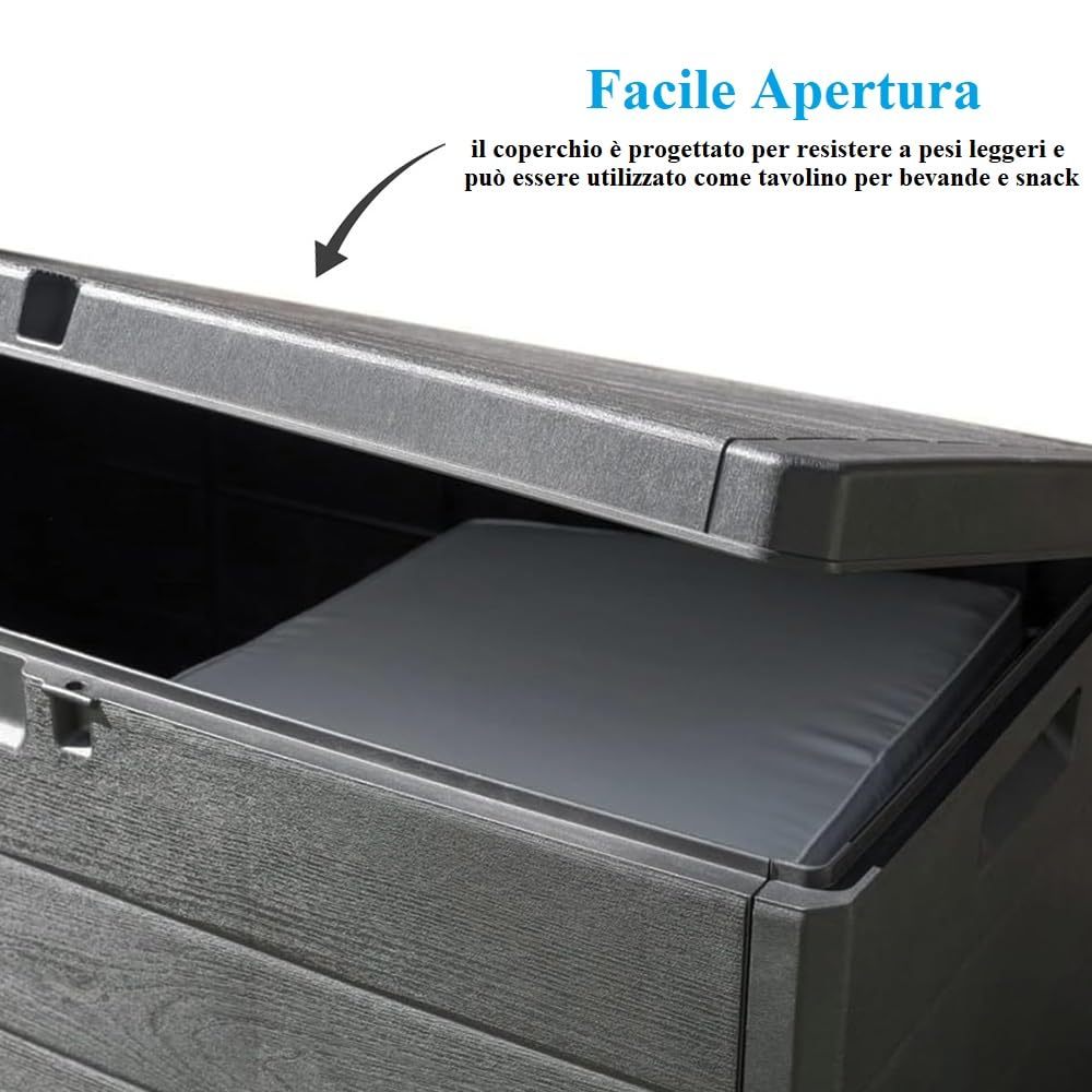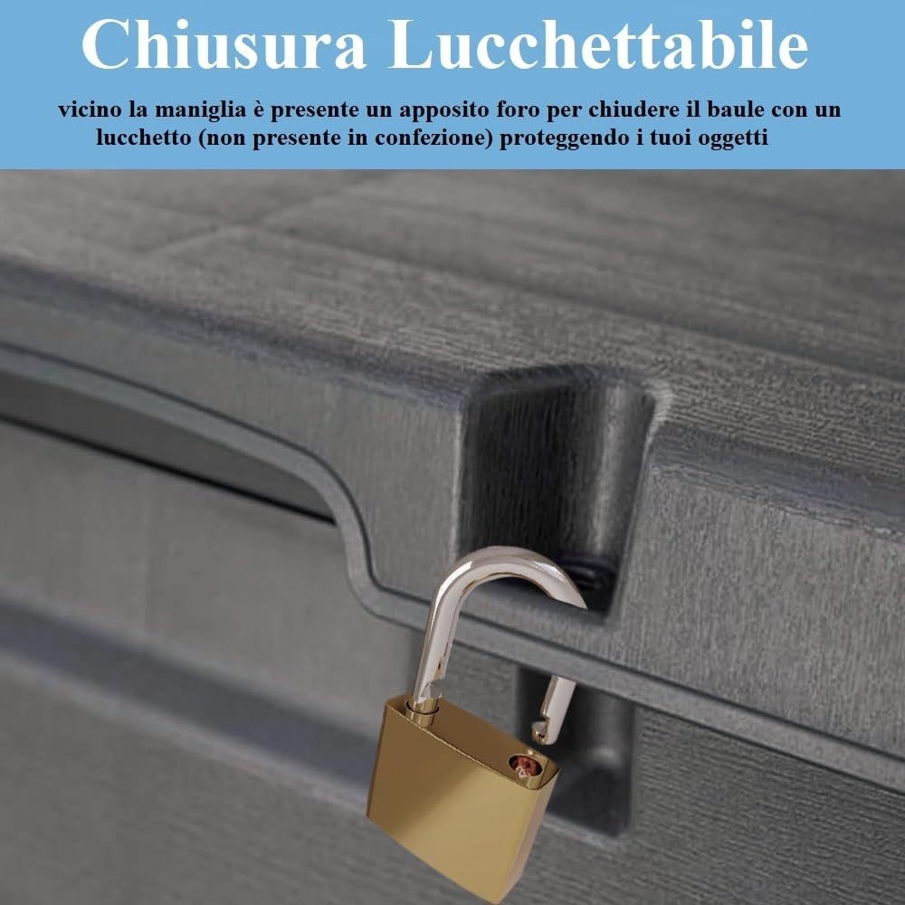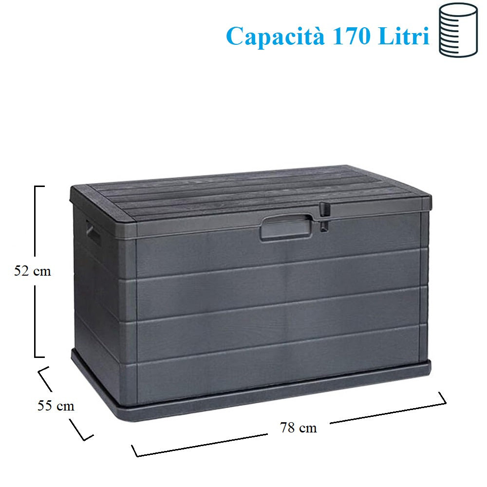 Baule da Giardino, misura 78x55x52 cm,Materiale resina,Impermeabile, Chiusura Lucchettabile, Contenitore da Esterno, Capacità 170 Litri -BET06F