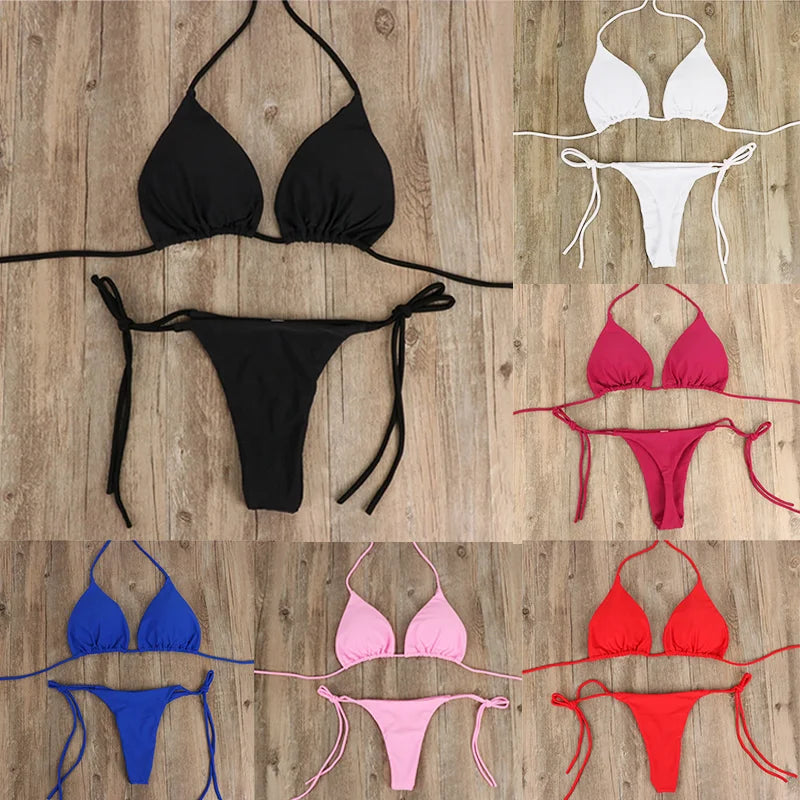 Beach Style Swimsuit for Women Sexy Halter Swimwear Solid Thong Female Bikini Set Bathing Suit Bikini Mujer Lingerie