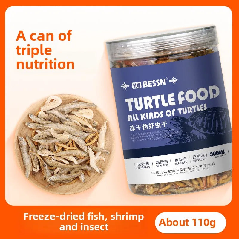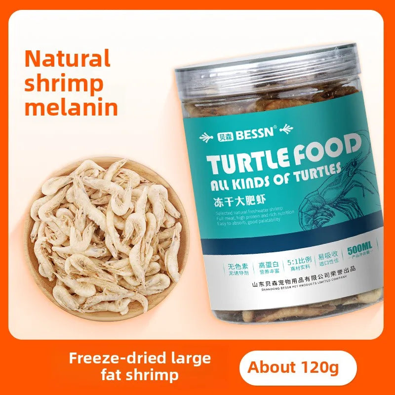 BESSN Aquatic Turtle Food - High Protein Freeze-Dried Shrimp&Meat Mix for Red-Eared Slider,Snapping Turtle&Terrapin