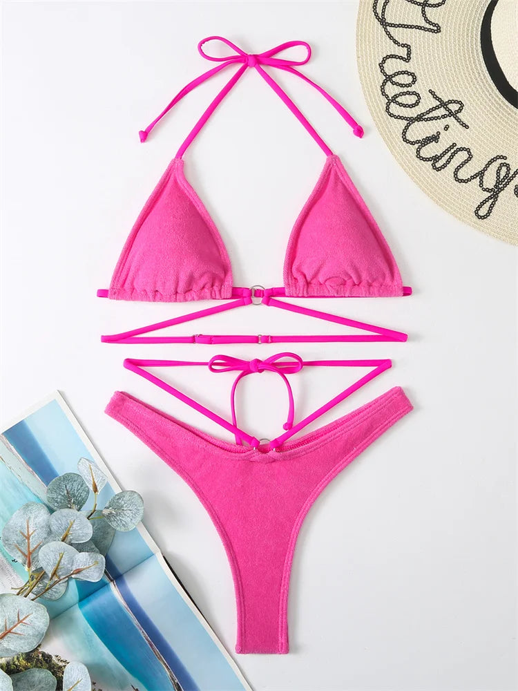 This 2025 high-waist bikini set combines modern design with flattering ribbed fabric for enhanced texture and fit. Featuring a stylish... Per saperne di più