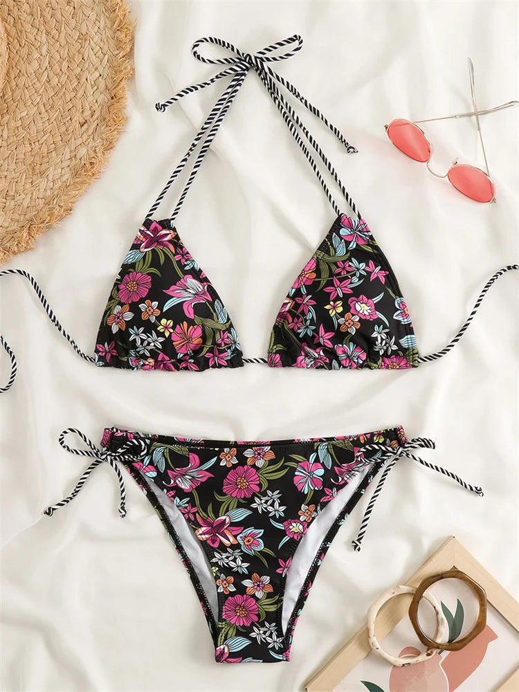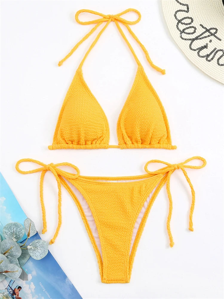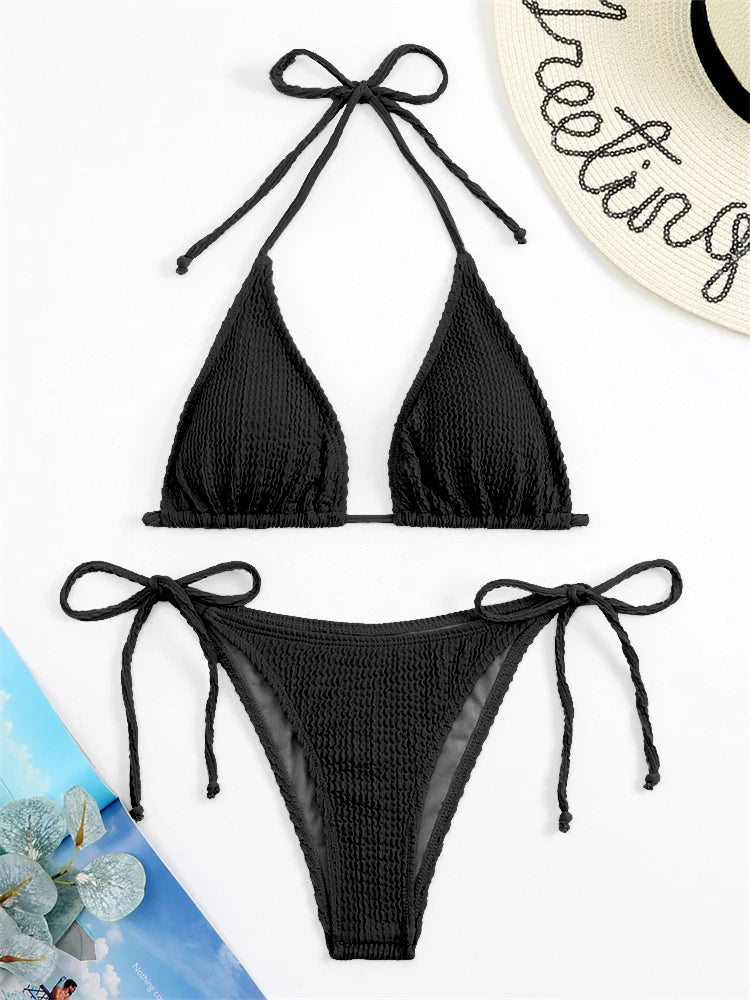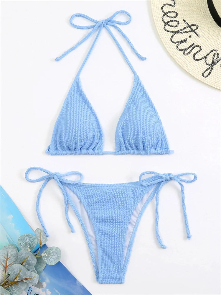 Bikini Swimsuit Women 2025 New High Waist Bikinis Set Ribbled Swimwear Print Thong Bathing Suit Female Biquini Brazilian Beach L