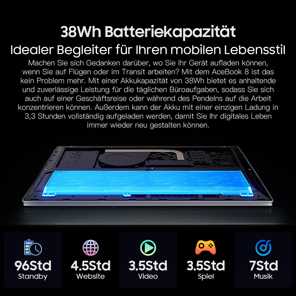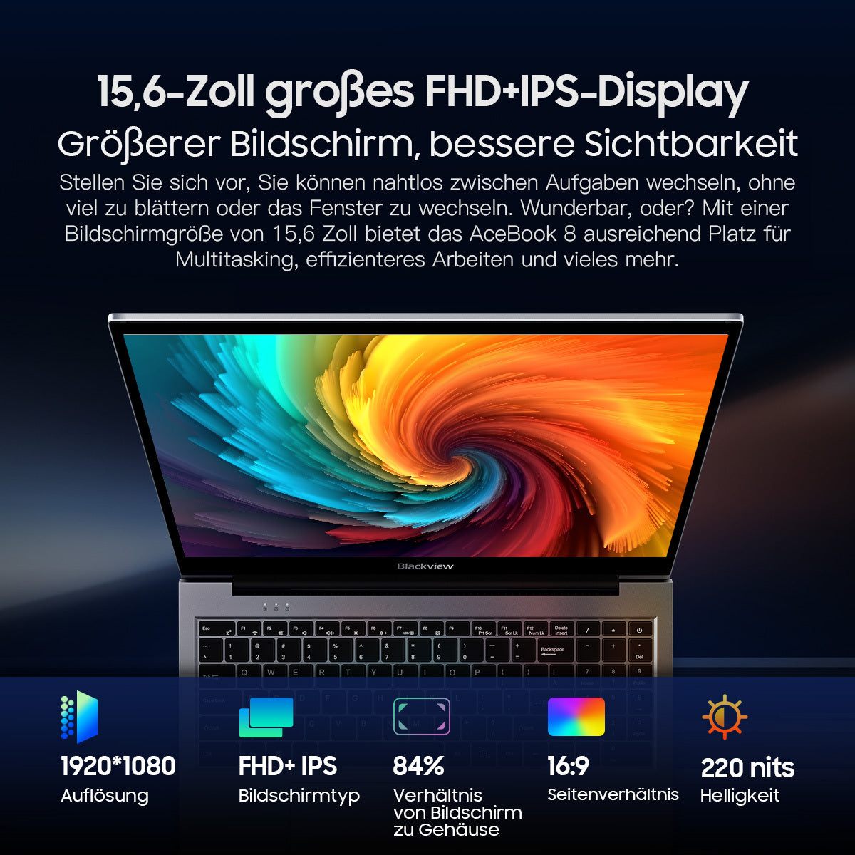 Blackview Laptop 15.6" FHD+ Notebook, 16GB DDR4 512GB SSD + TF, Processore Intel 3.6GHz N97/ Grafica Intel UHD, 38Wh, Tastiera QWERTY, USB 3.0, Rilevamento Impronta, FaceID, WiFi 5G