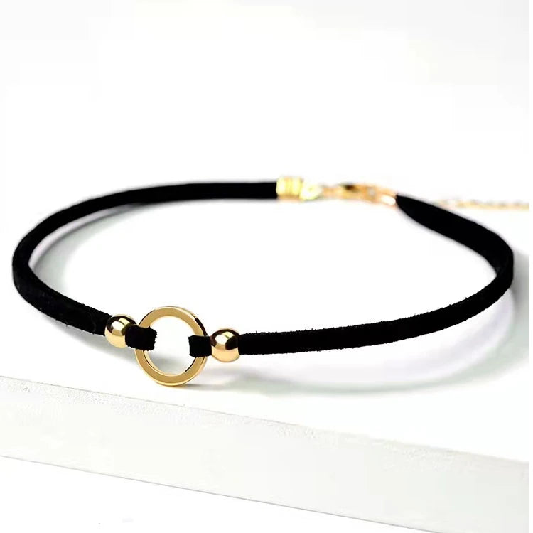 Boho Black Leather Choker Necklaces Adjustable Layered Velvet Leather O-ring Collar Necklace Goth Jewelry Gifts for Women Girls