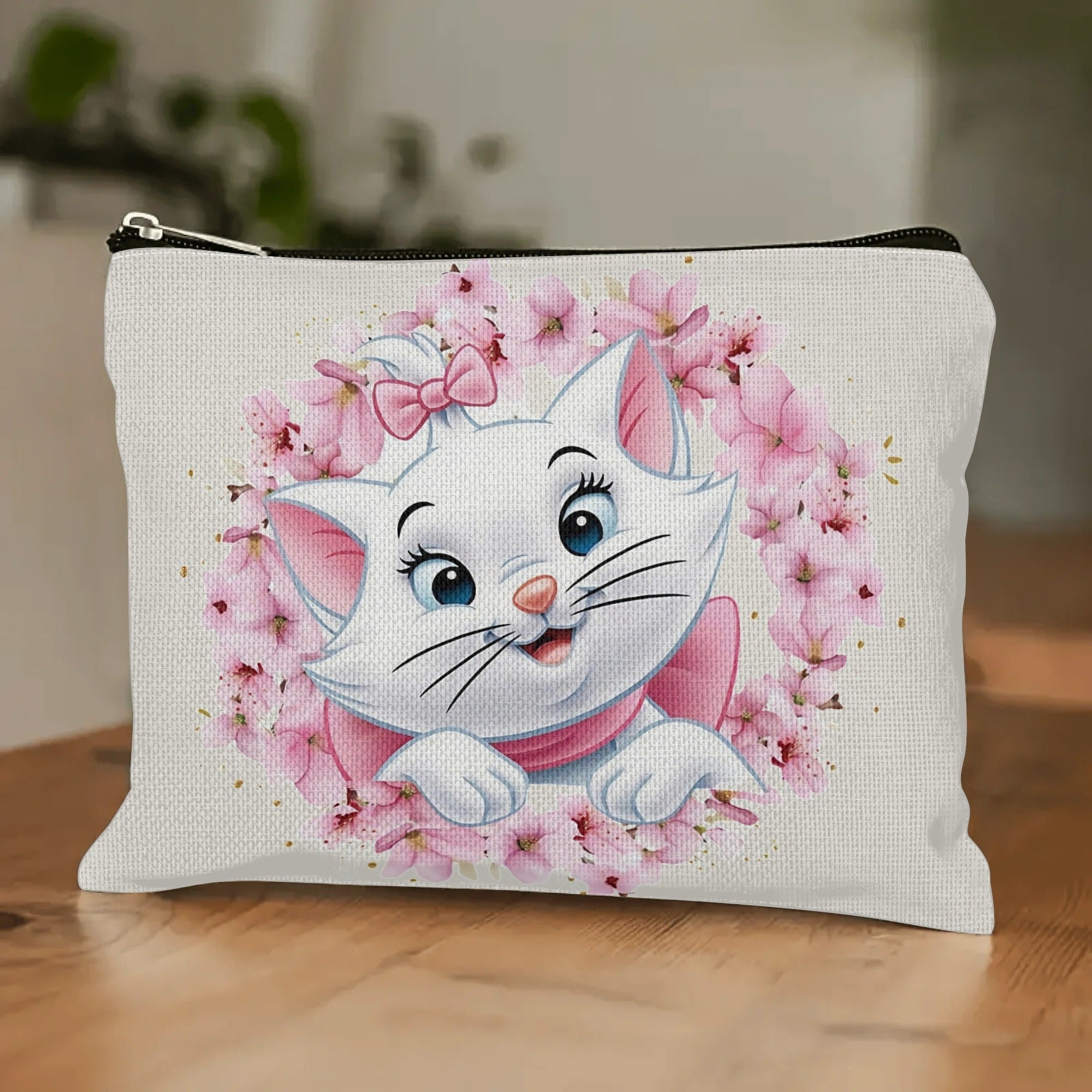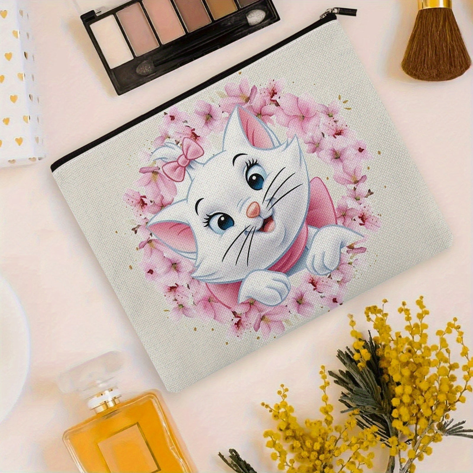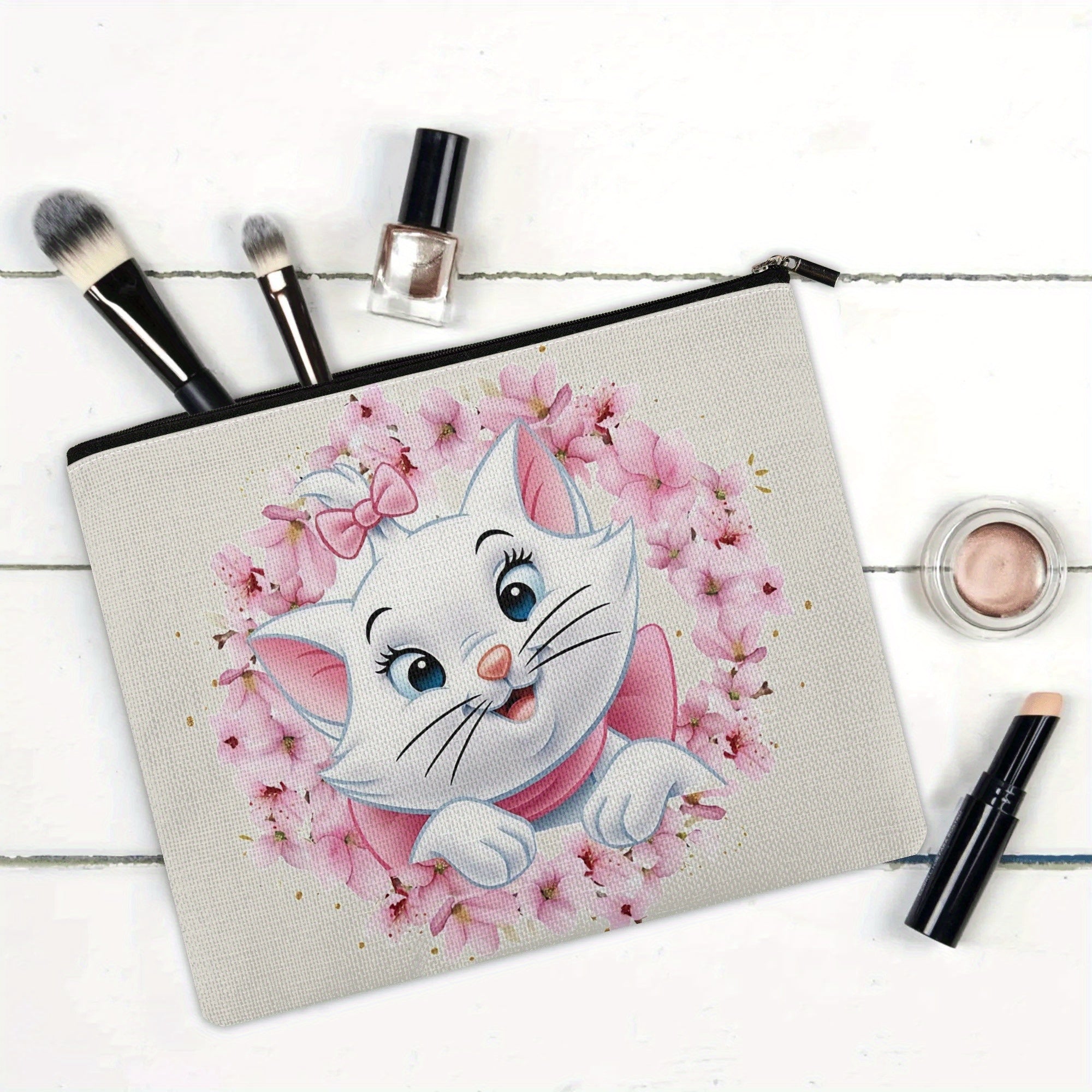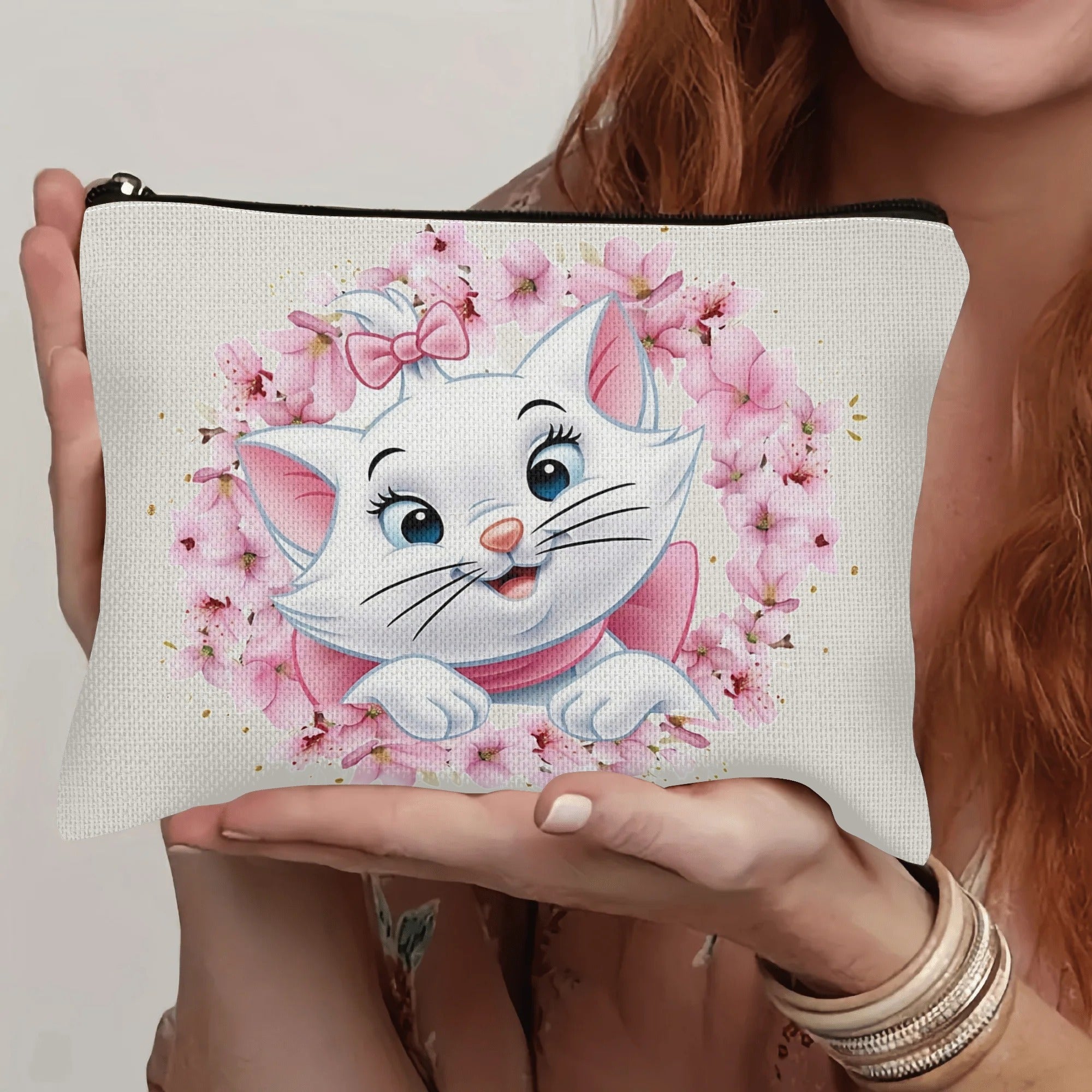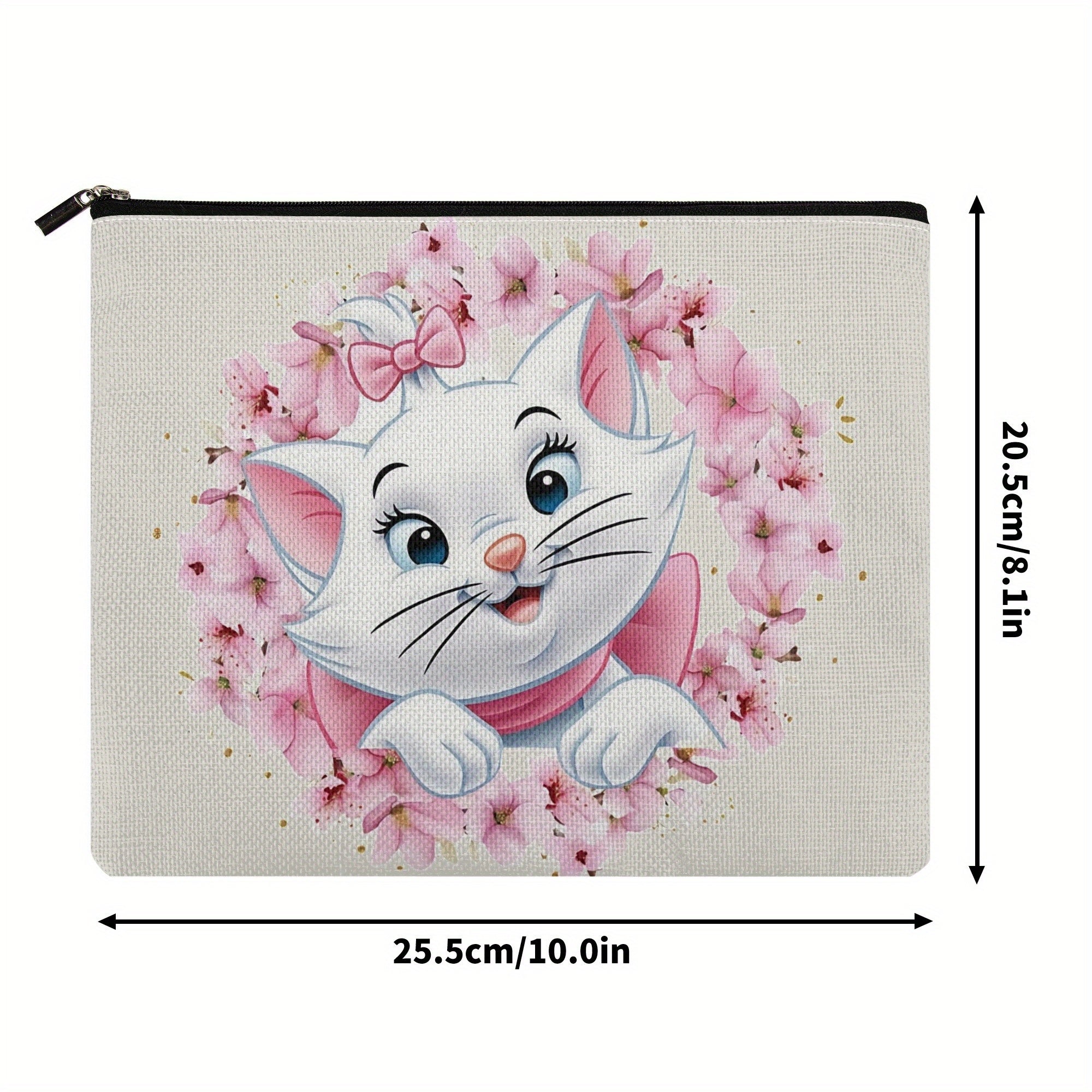 Borsa da trucco Disney The Aristocats Lovely Wreath Marie W3.22-94, grande capacità, multi-funzionale, senza profumo, con cerniera sicura, resistente, comoda, per viaggi, uso quotidiano