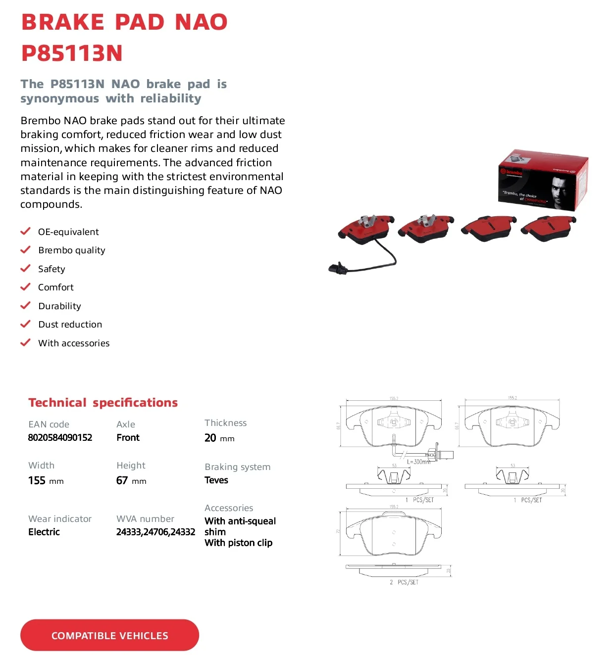 Brembo P85133 Kit pastiglie freno anteriori per AUDI A4 Allroad B8 Avant A5 A4L B8 Pastiglie in ceramica di alta qualità OE # 8K0698151A