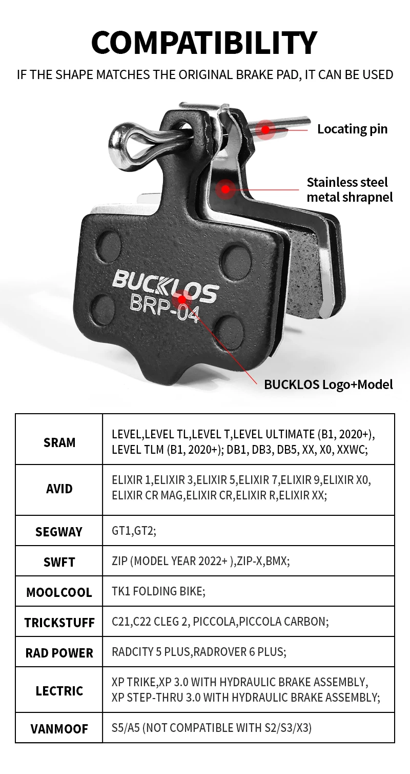BUCKLOS Pastiglie freno a disco in resina per SRAM AVID Pastiglie freno idrauliche resistenti all'usura Pastiglie freno MTB per parti ciclistiche DB3 DB5 ELIXIR