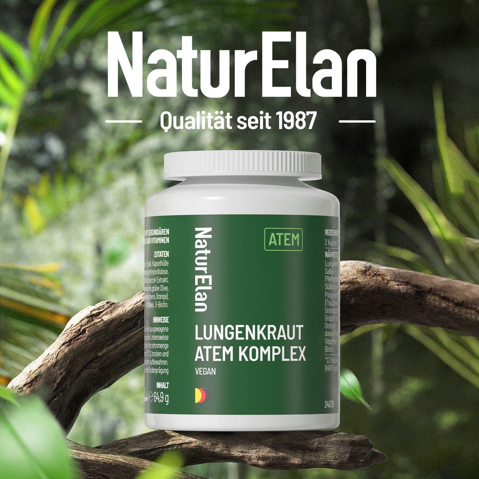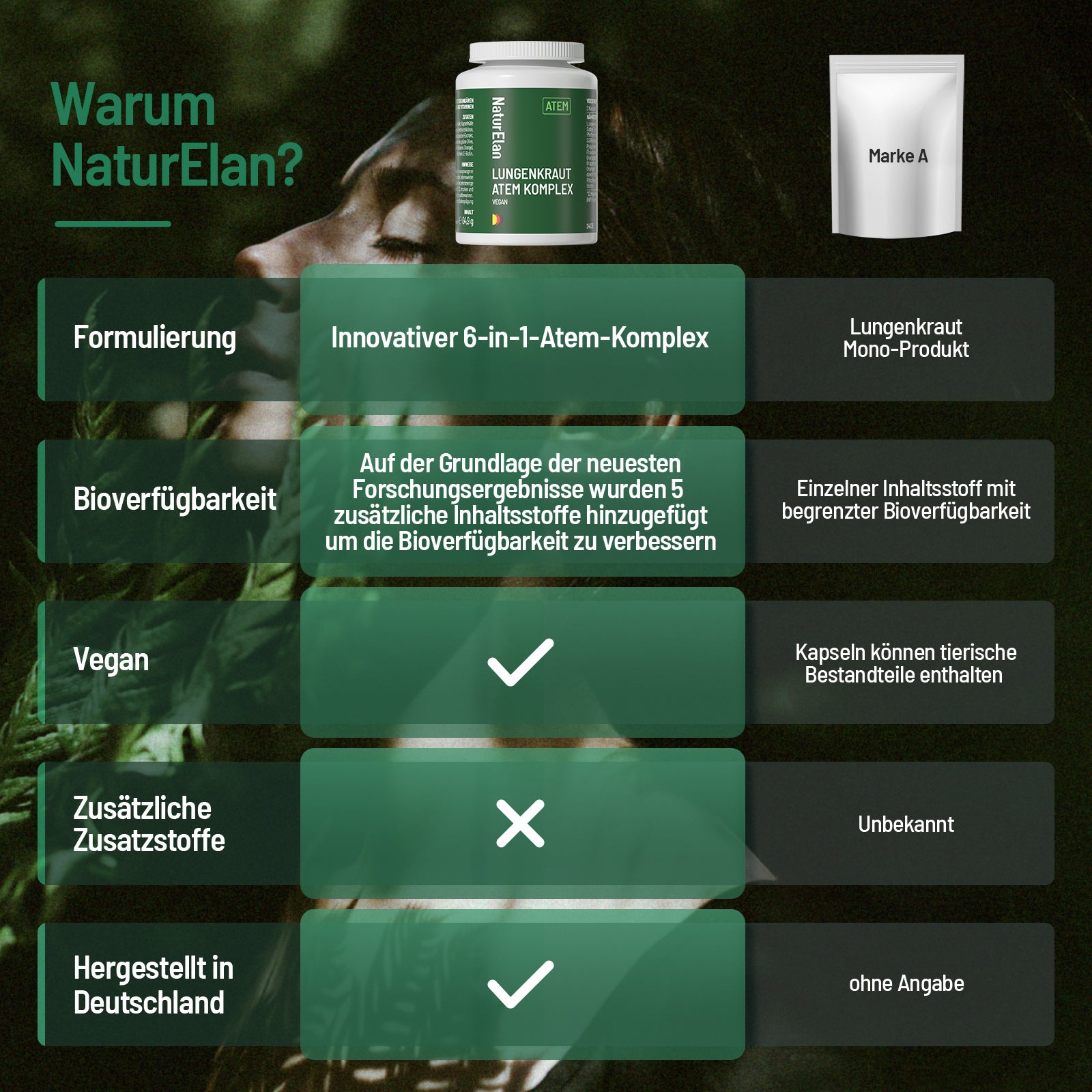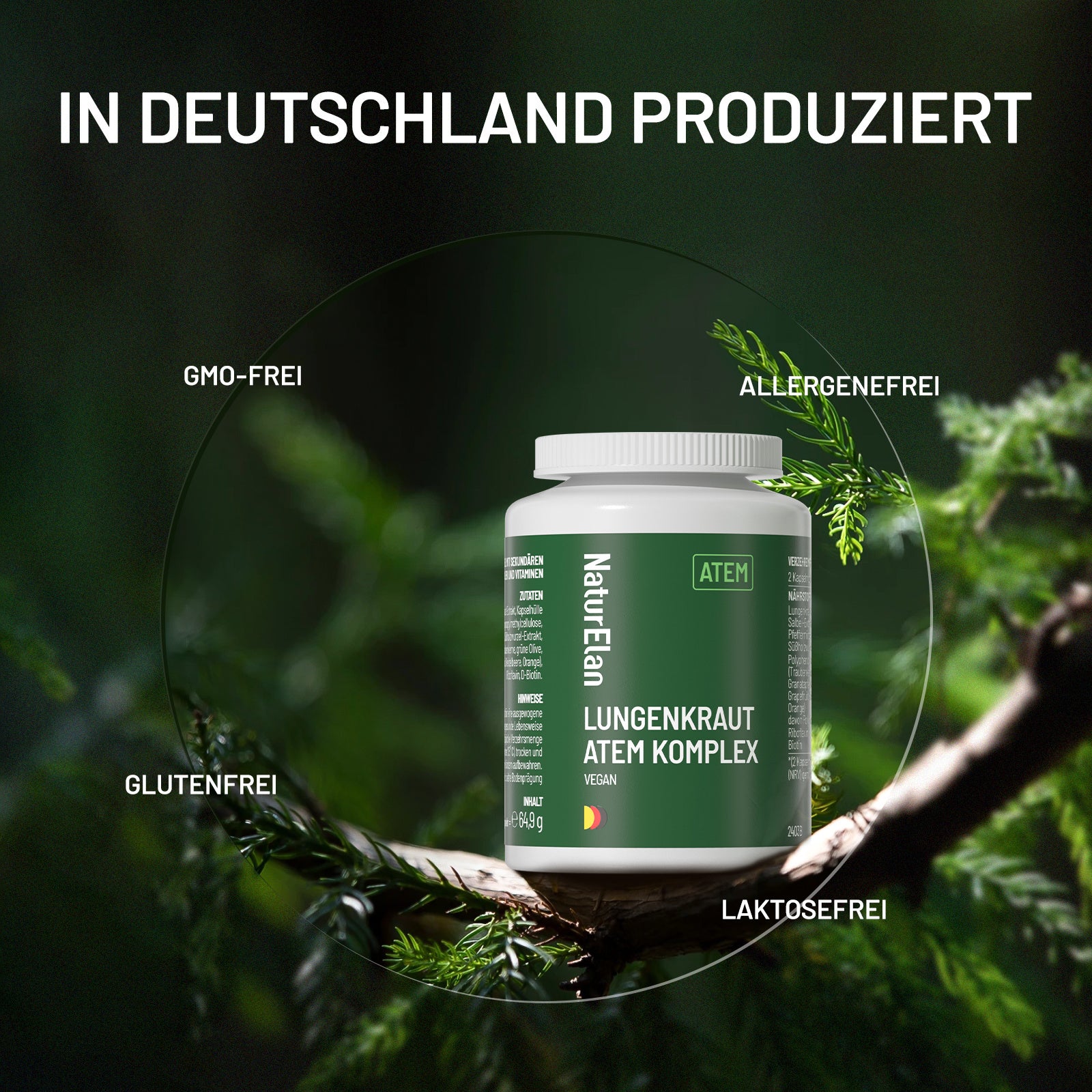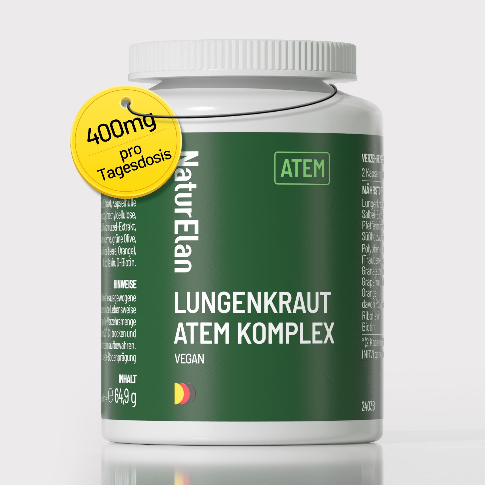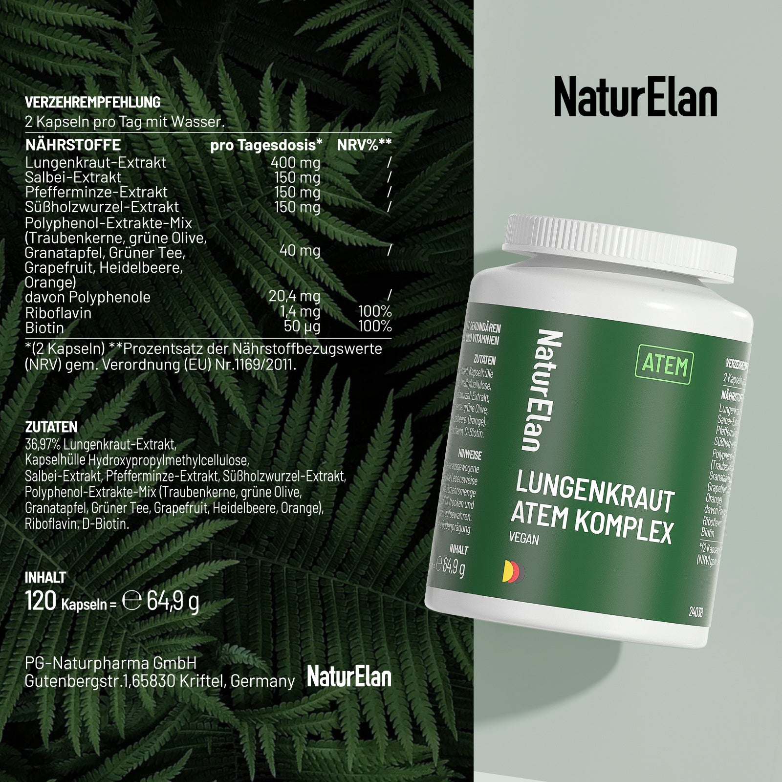 Capsule di lungwort - Complesso respiratorio, 120 capsule con 400 mg per dose quotidiana, con lungwort, salvia, menta, radice di liquirizia, estratti di polifenoli e altro ancora. Vegano, senza additivi, prodotto in Germania.