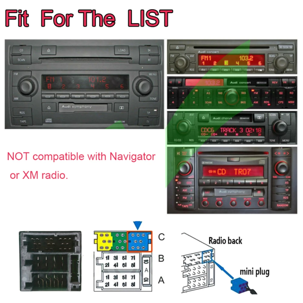 4. NOT compatible Audi Navigation Plus 1 (must not MMI), Navigation Plus 2 (must not MMI)
