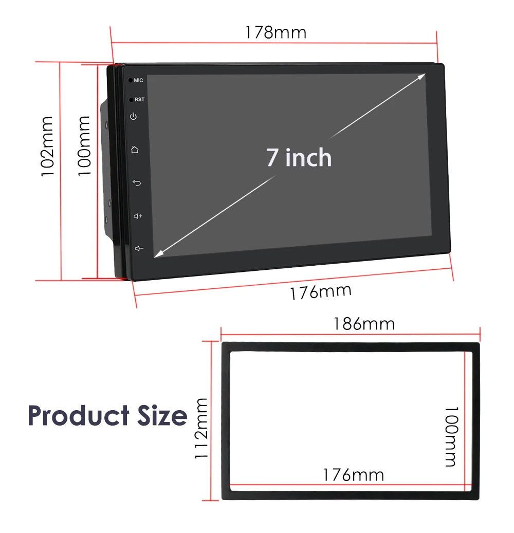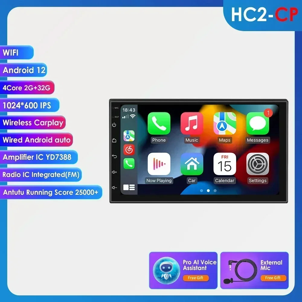 2G RAM 32G ROM Carplay: AD7002CPwith 1*Wire Harness Cable,1*RCA Cable with 9 wires(supports Video Output),1*CAM-VIN wire,1*External Mic,2*USB wire,1*GPS Antenna,1 sets Metal Bracket,1*Front plastic frame.