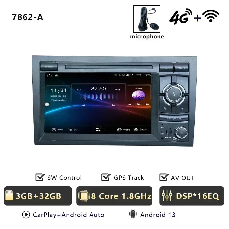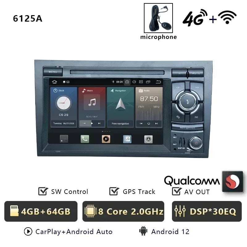 Car Radio Multimedia Wireless Carplay For Audi A4 B6 B7 S4 RS4 2002-2012 CHSTEK Bluetooth Android GPS WIFI 4G Auto Screen Stereo