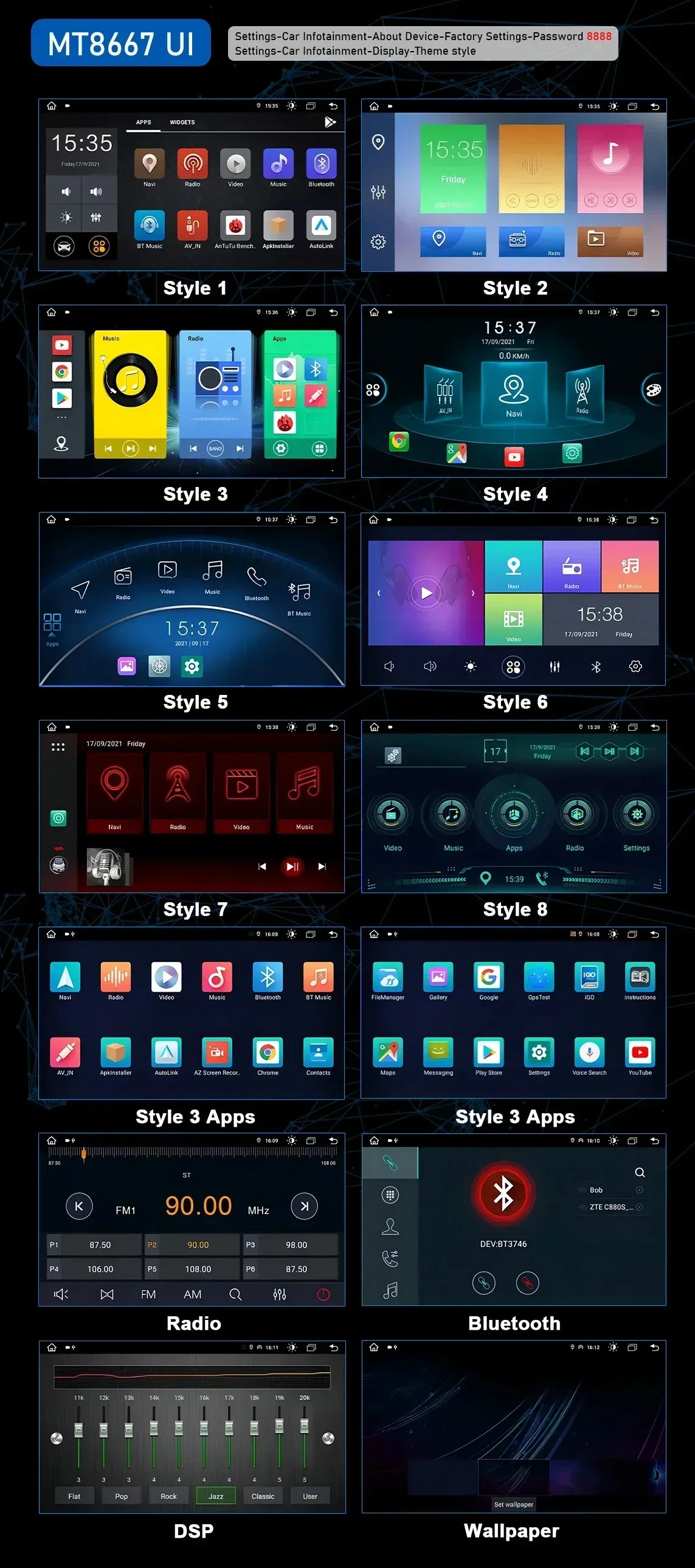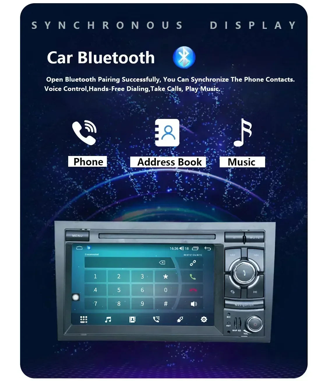 Bluetooth 5.0 with faster transfer speed, wider coverage and enhanced anti-interference,the Bluetooth 5.0 wireless technology allow you to stream Spotify and Pandora from yourphone to enjoy millions of songs you like with a high fidelity quality.And make hands-free calling without noise while driving.(Please refer to the product you have purchased)