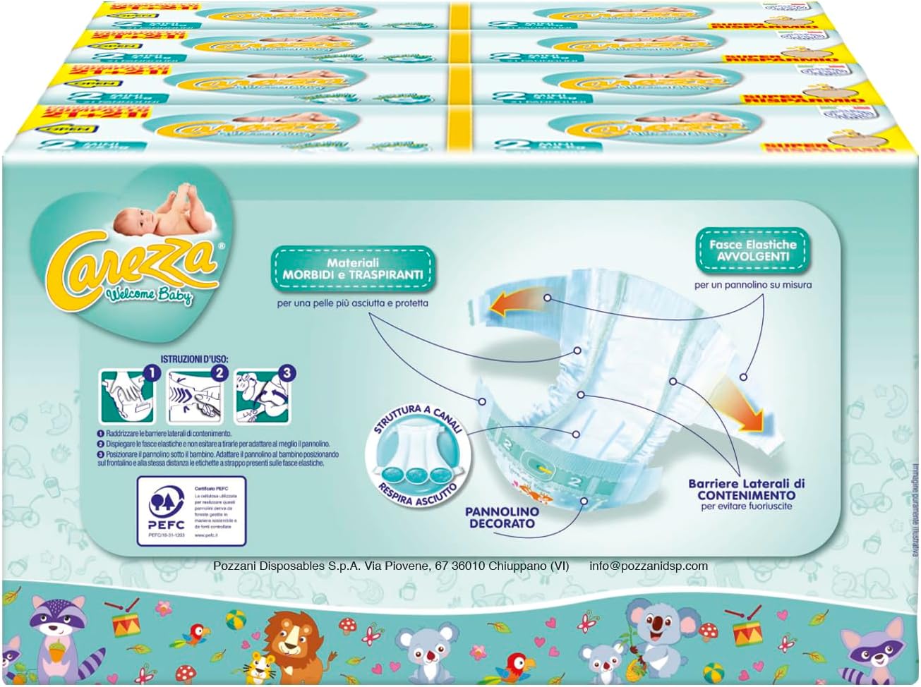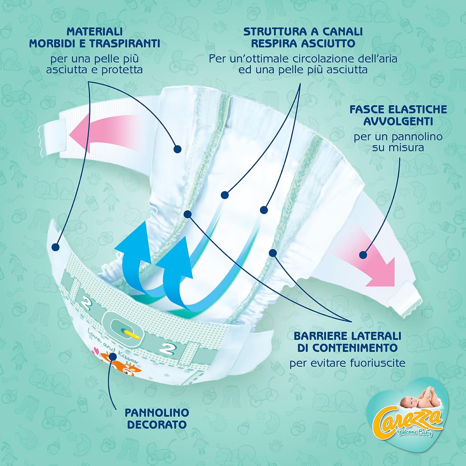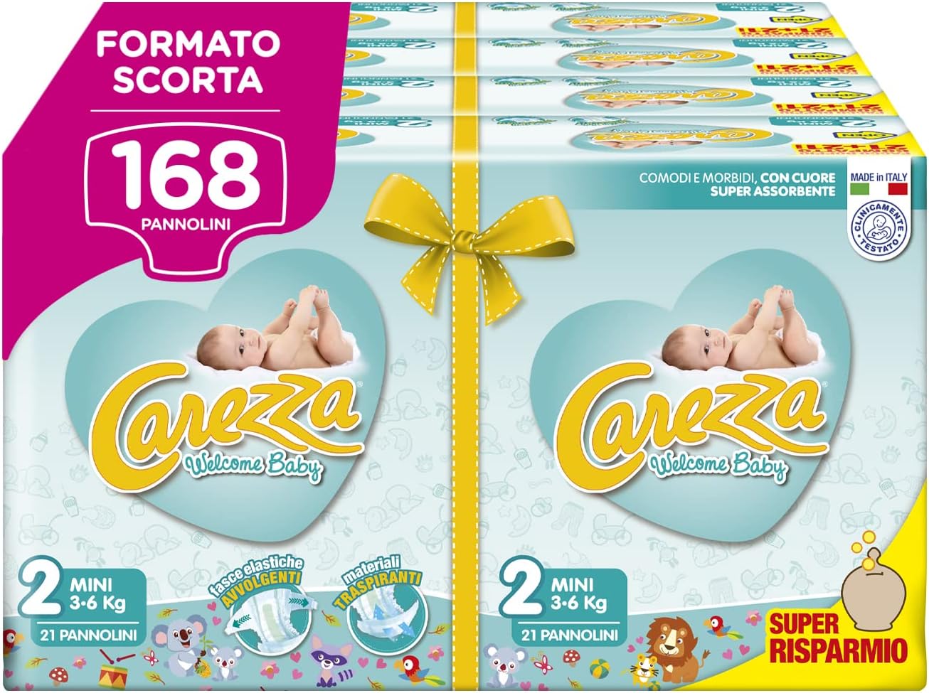 CAREZZA Welcome Baby Mini, Taglia 2 (3-6 kg), 168 pannolini