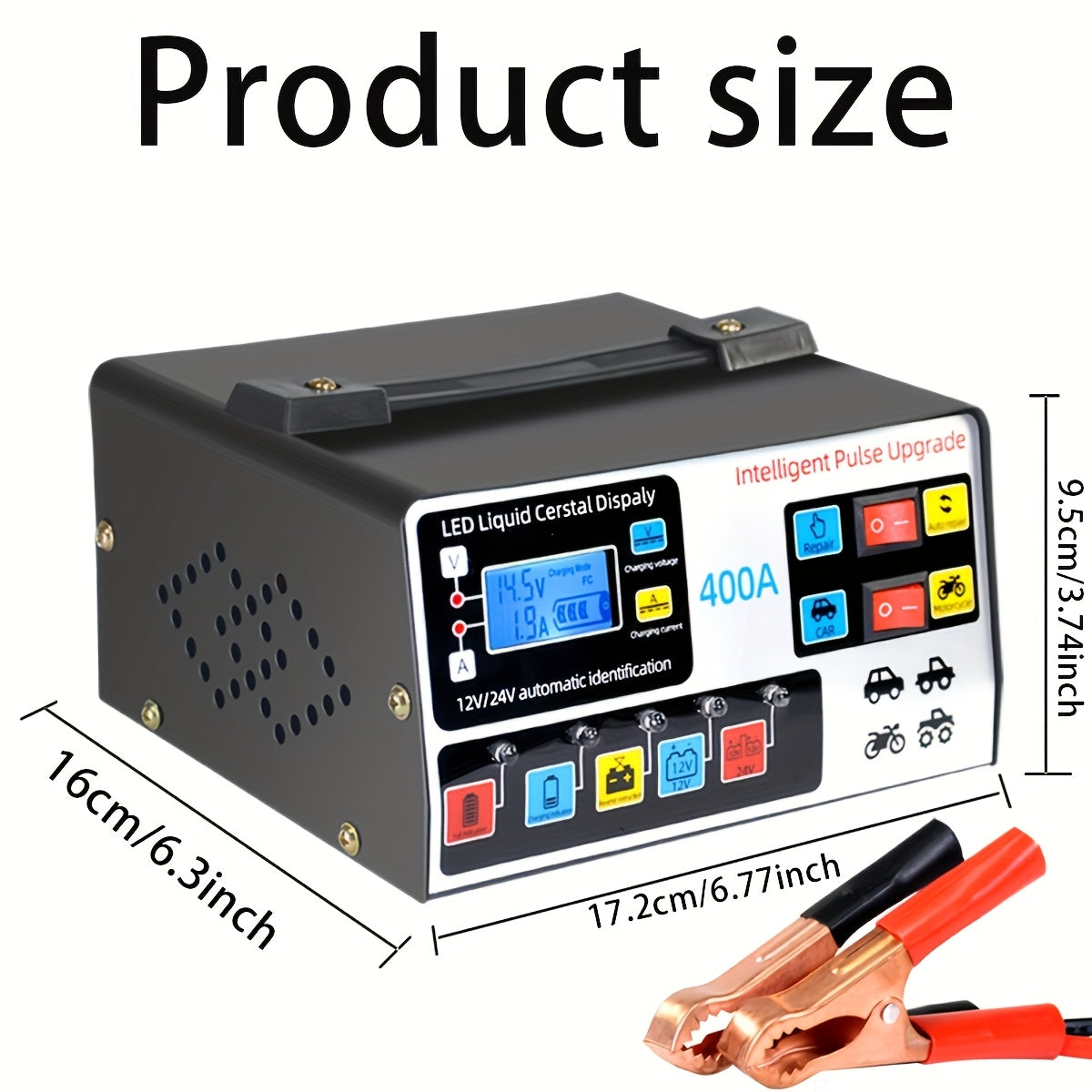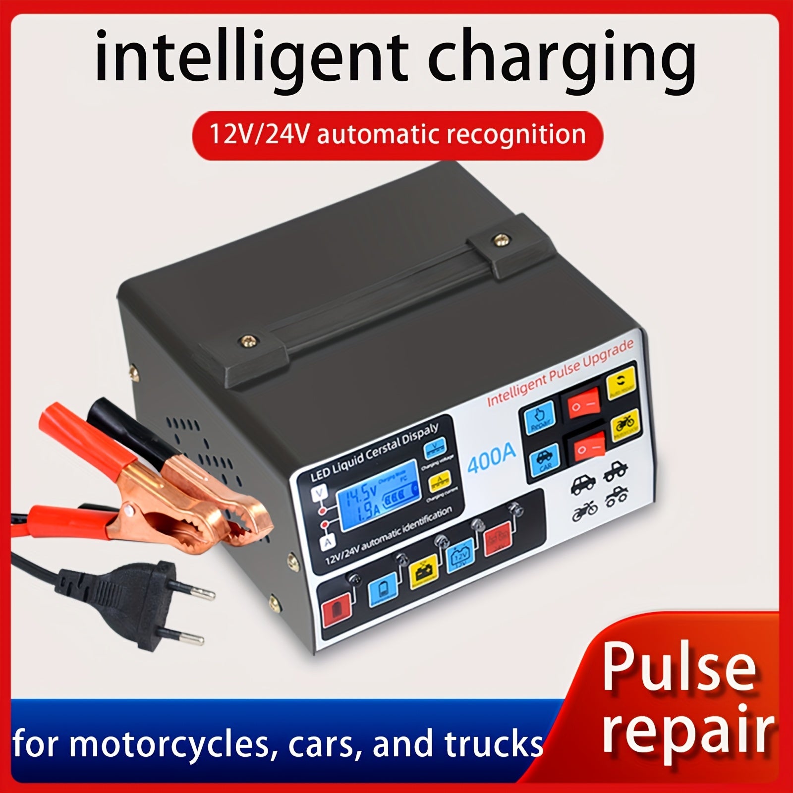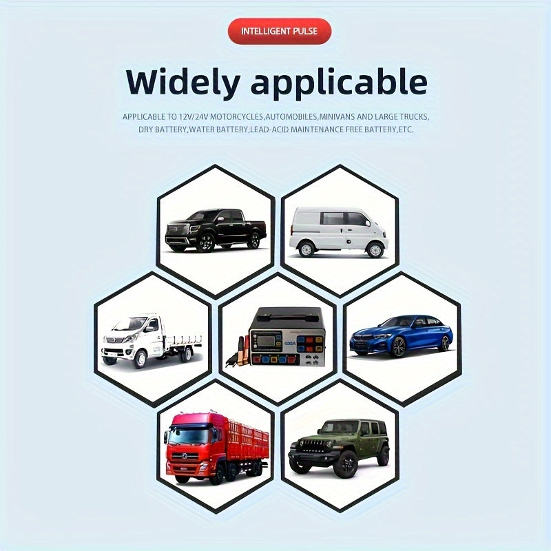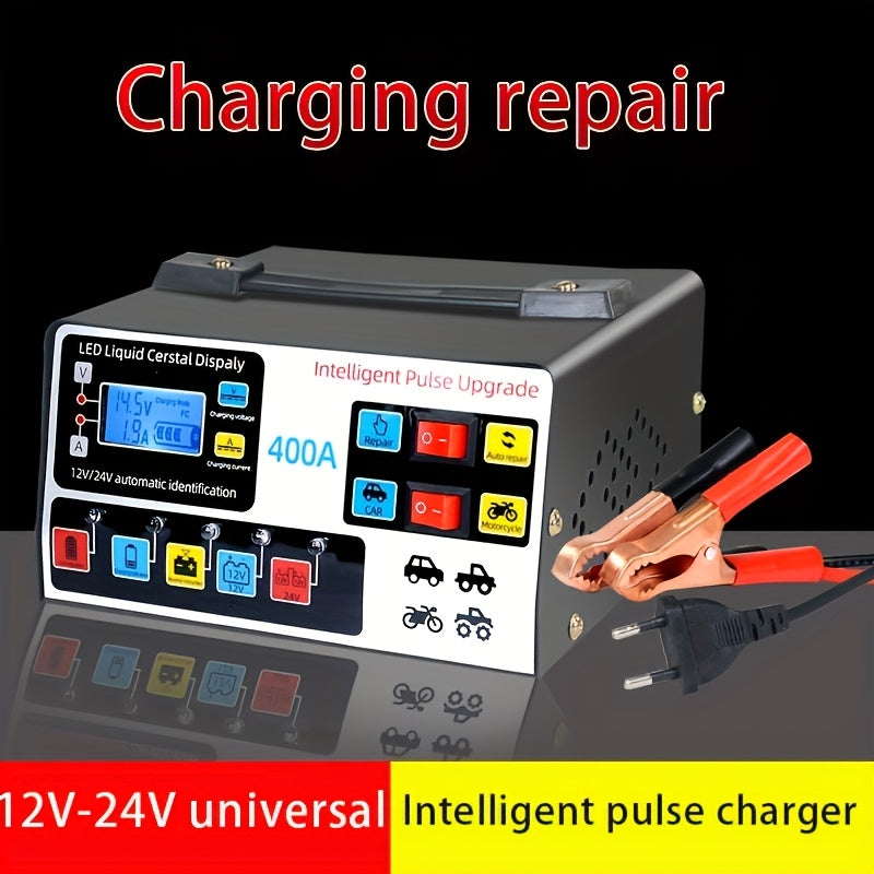 Caricabatteria intelligente per motocicli e auto 12V/24V - Strumento di riparazione e manutenzione con display a LED, compatibilità 110/220V, fonte di alimentazione portatile per la manutenzione efficiente della batteria del veicolo, senza batteria