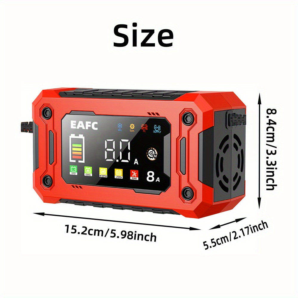 Caricabatterie auto intelligente EAFC 15A con schermo a colori Caricabatterie automatica completa per batterie di auto, mantainer, caricabatterie a goccia, strumenti di riparazione batterie, accessori auto per tosaerba, barca, batterie marine al piombo ac