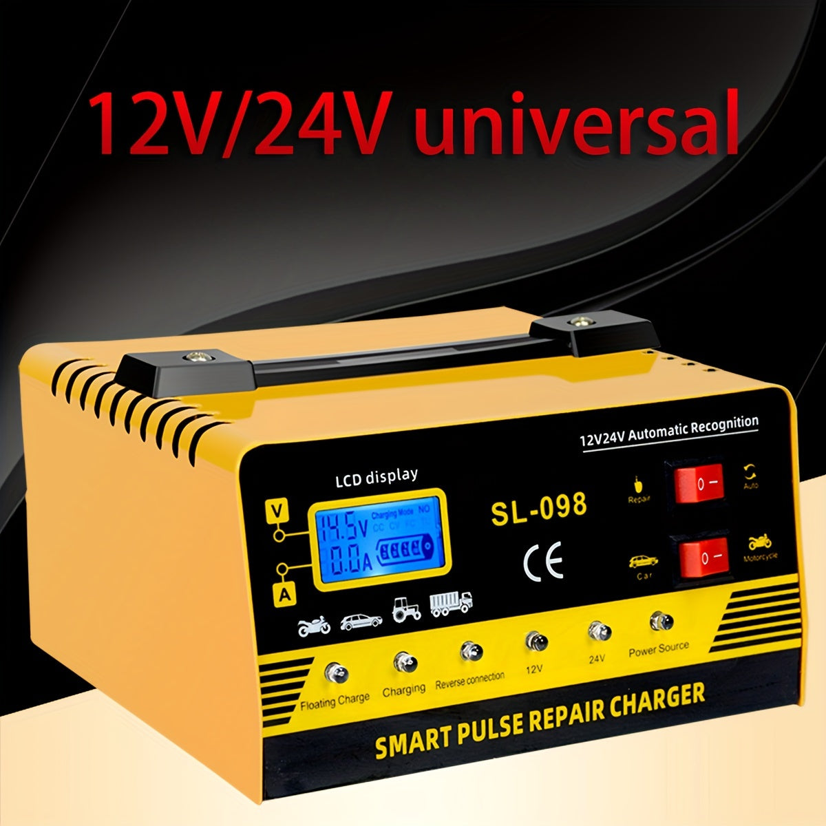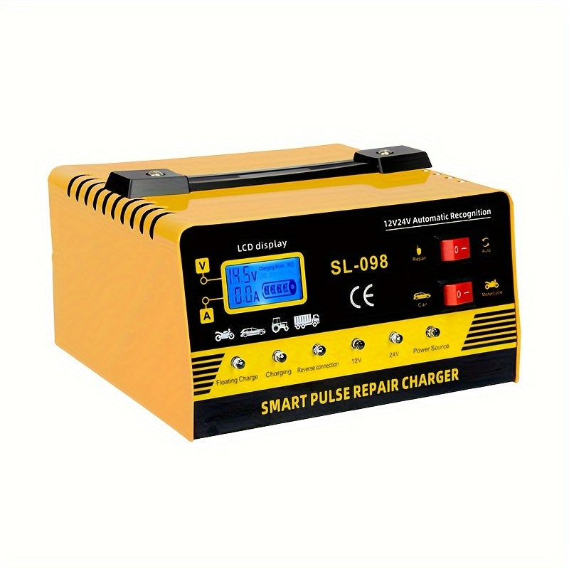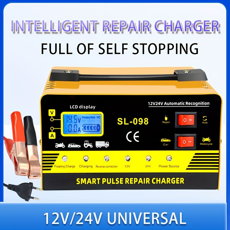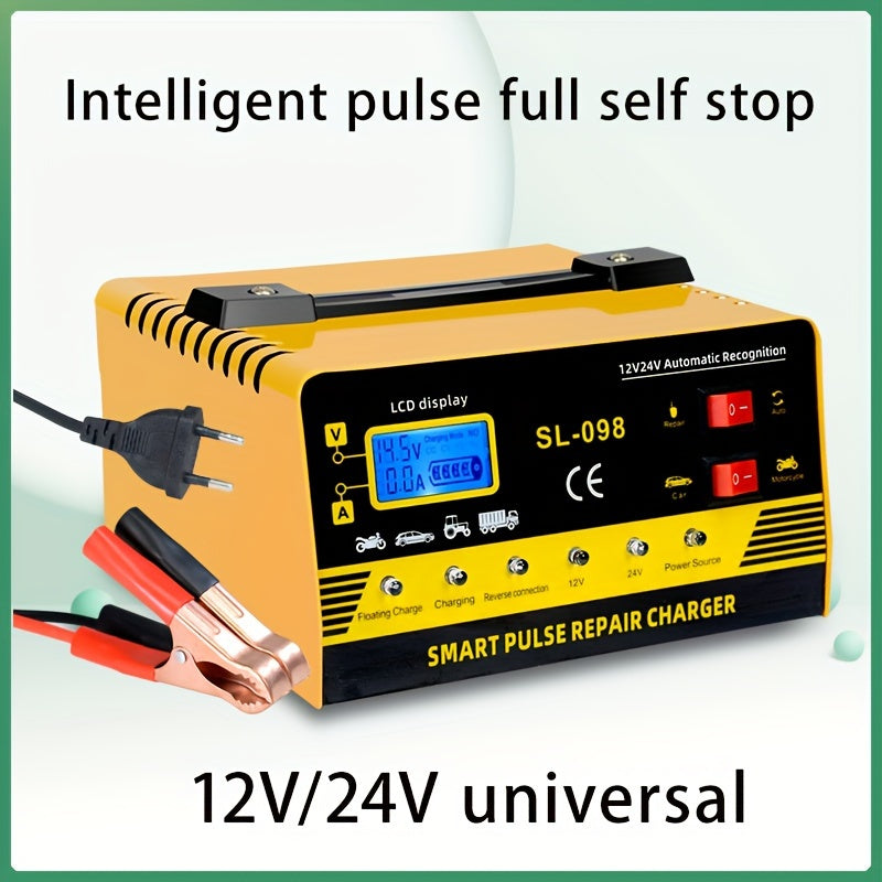 Caricabatterie intelligente per riparazioni a impulsi, potenza elevata, 24V/12V, per auto, camion, SUV, barche e motocicli - rilevazione automatica della tensione 110V/220V, display LCD, protezione contro sovraccarichi, ricarica a massa e manutenzione, st
