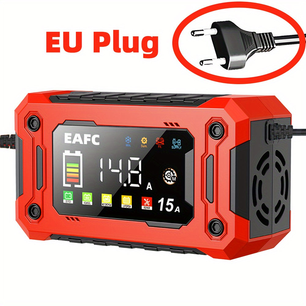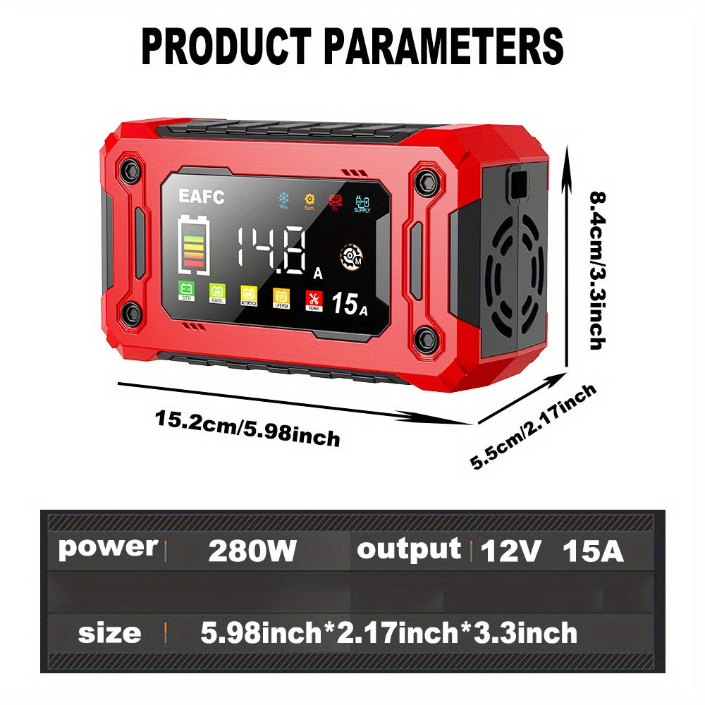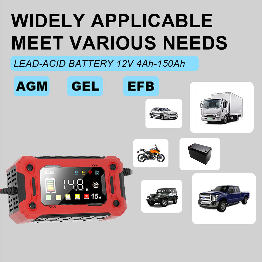 Caricabatterie Smart 12V 15A con Schermo a Colori e Controllo Touchscreen - Carica Automatica per AGM/GEL/SLA/LIFEPO4/Batterie Umide, Protezione da Sfregamento/Surriscaldamento/Retrocarica, Alimentazione AC 110V-240V, Strumento di Manutenzione per Auto, T