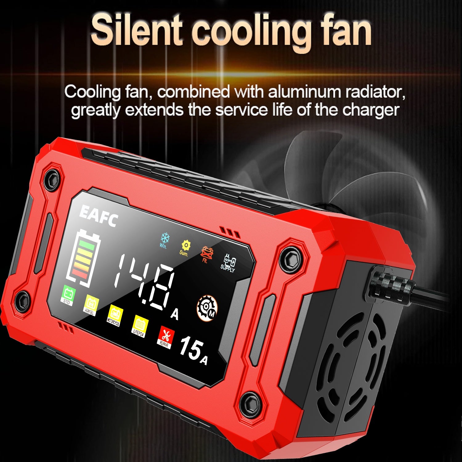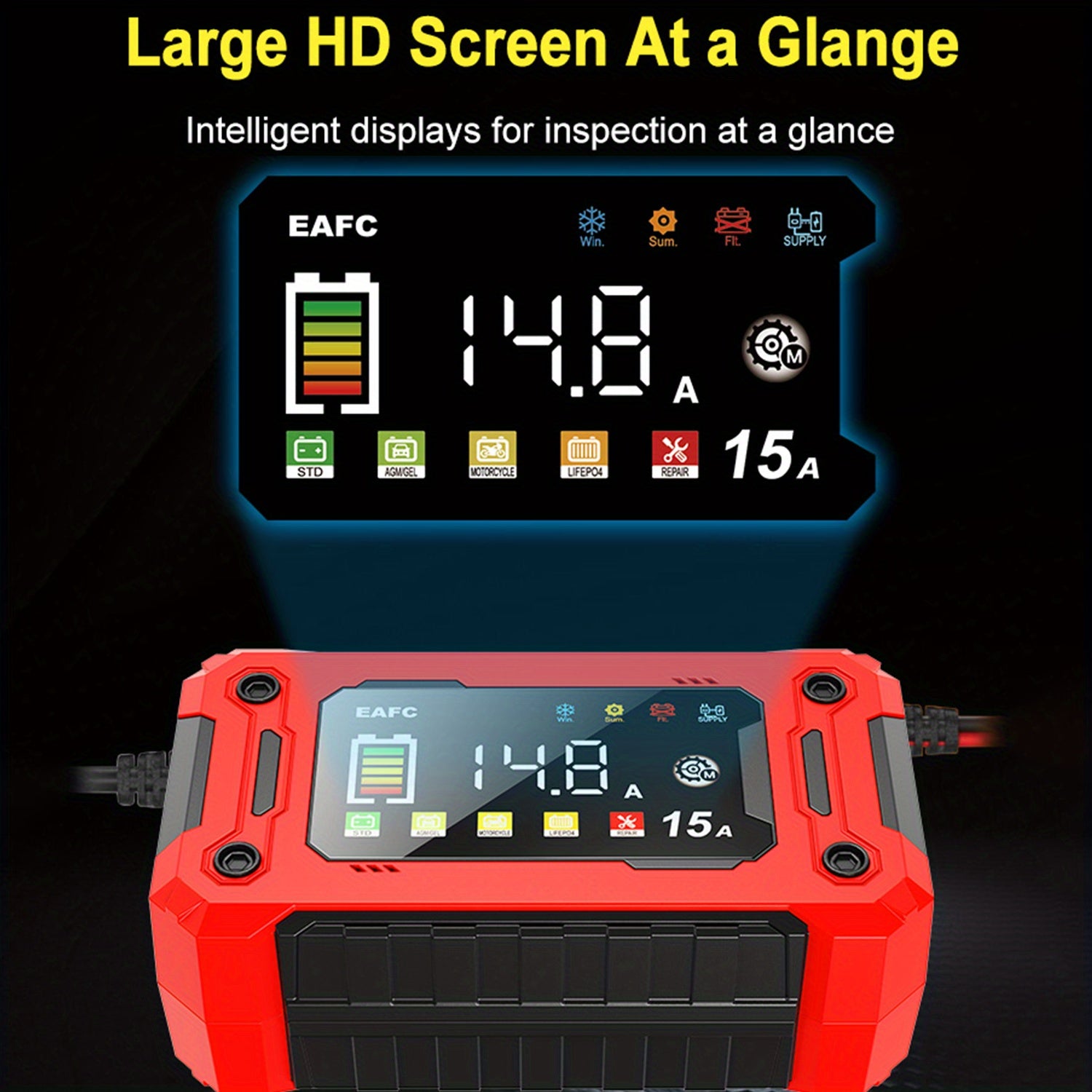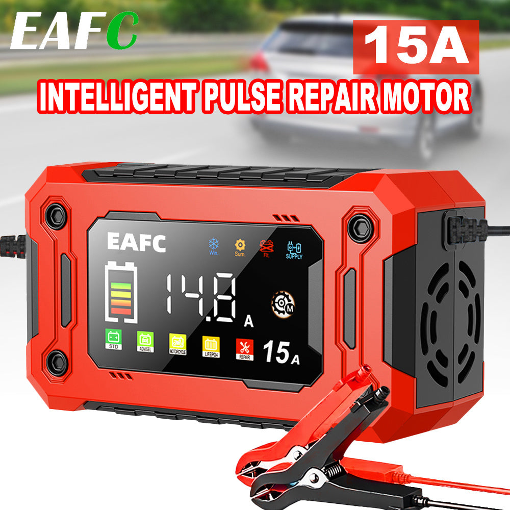 Caricabatterie Smart 12V 15A con Schermo a Colori e Controllo Touchscreen - Carica Automatica per AGM/GEL/SLA/LIFEPO4/Batterie Umide, Protezione da Sfregamento/Surriscaldamento/Retrocarica, Alimentazione AC 110V-240V, Strumento di Manutenzione per Auto, T
