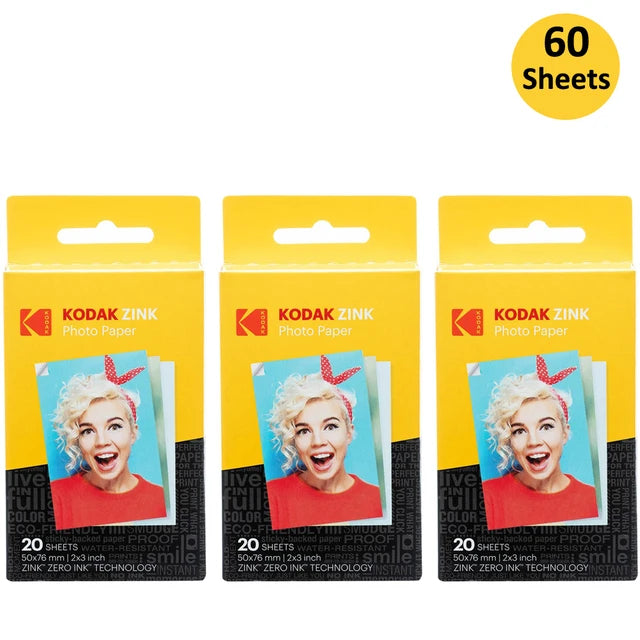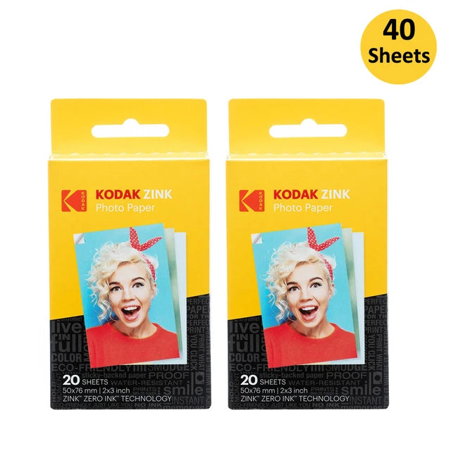 Carta fotografica originale Kodak Premium Zink da 2"x3" (20-100 fogli) compatibile con Kodak Smile, Kodak Step, carta fotografica PRINTOMATIC