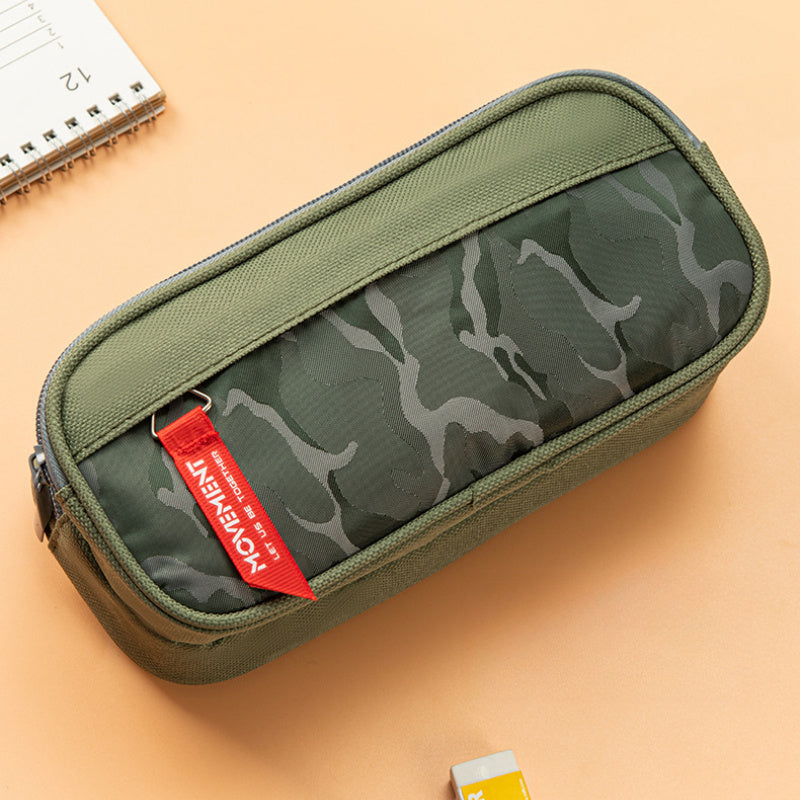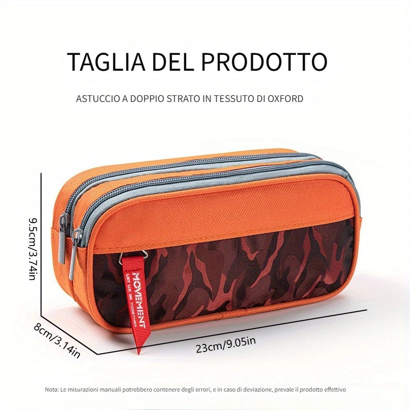 Cassettino per matite in tessuto Oxford resistente - Grande capacità a doppio strato con più scomparti e chiusura con cerniera, opzioni eleganti in camo e colori solidi (nero, blu, arancione, grigio, verde) per la scuola, l'ufficio, il viaggio, la conserv