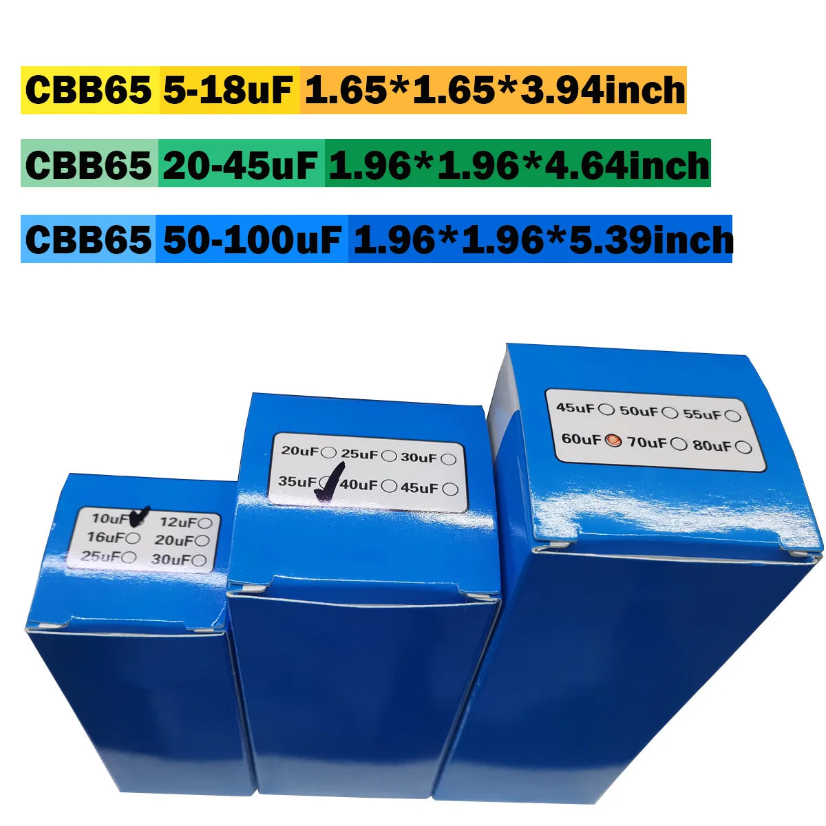 CBB65 450V AC Motor Capacitor Air Conditioner Compressor Start Capacitor 20uF 25uF 30uF 35uF 40uF 45uF 50uF 60uF 70uF 75uF 80uF