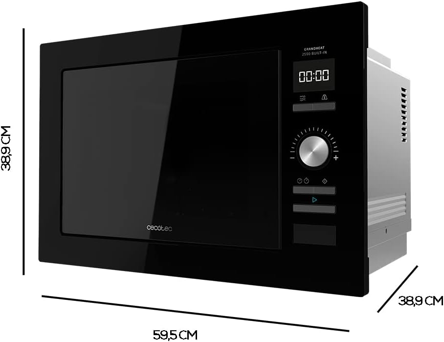 Cecotec Microonde da incasso digitale GrandHeat 2590 Built-In Nero 900 W, Incasso, 25 litri, Touch, Grill 1000 W, 8 funzioni preimpostate, Timer
