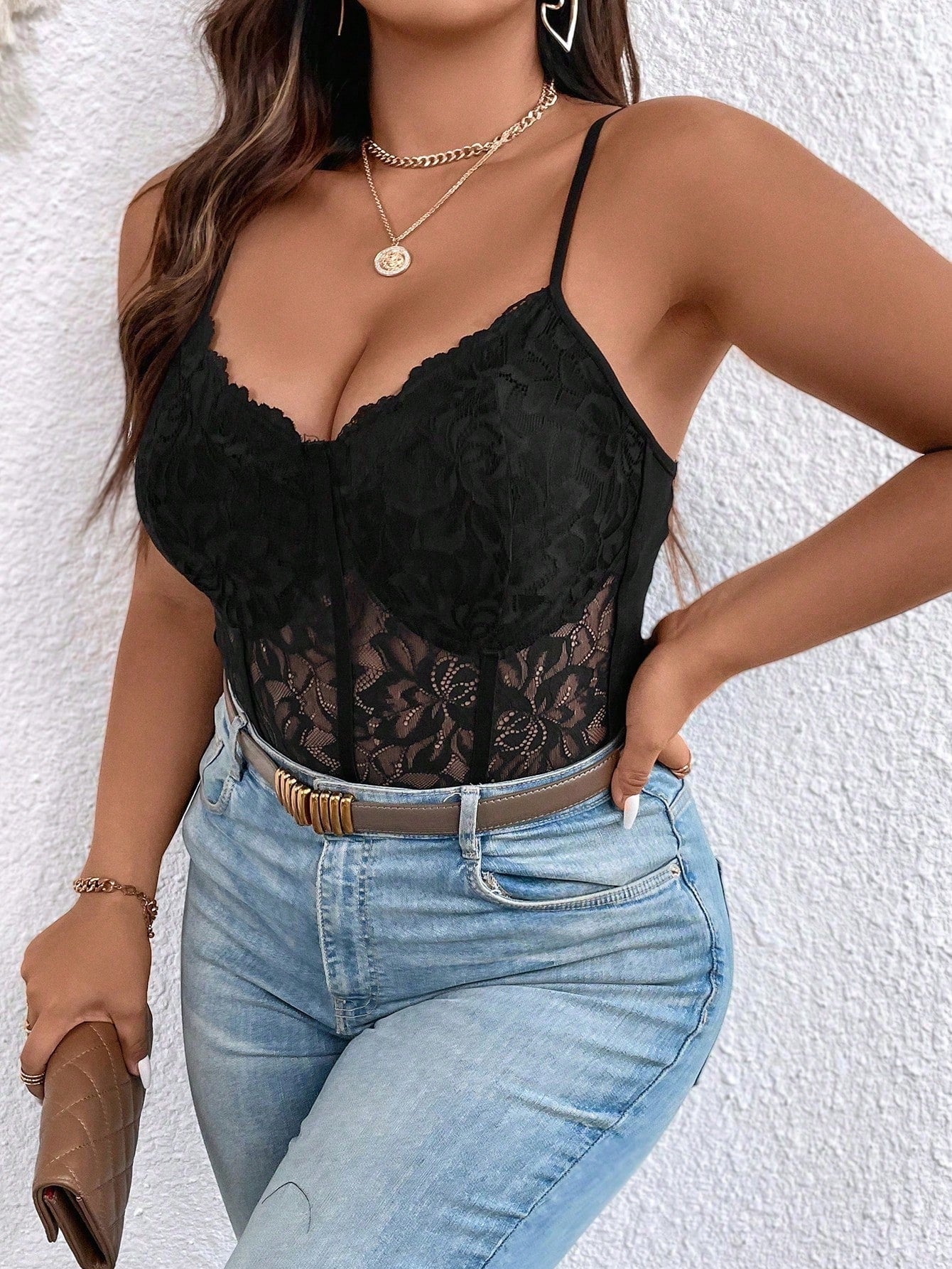 Celure Plus Lace Cami Bodysuit