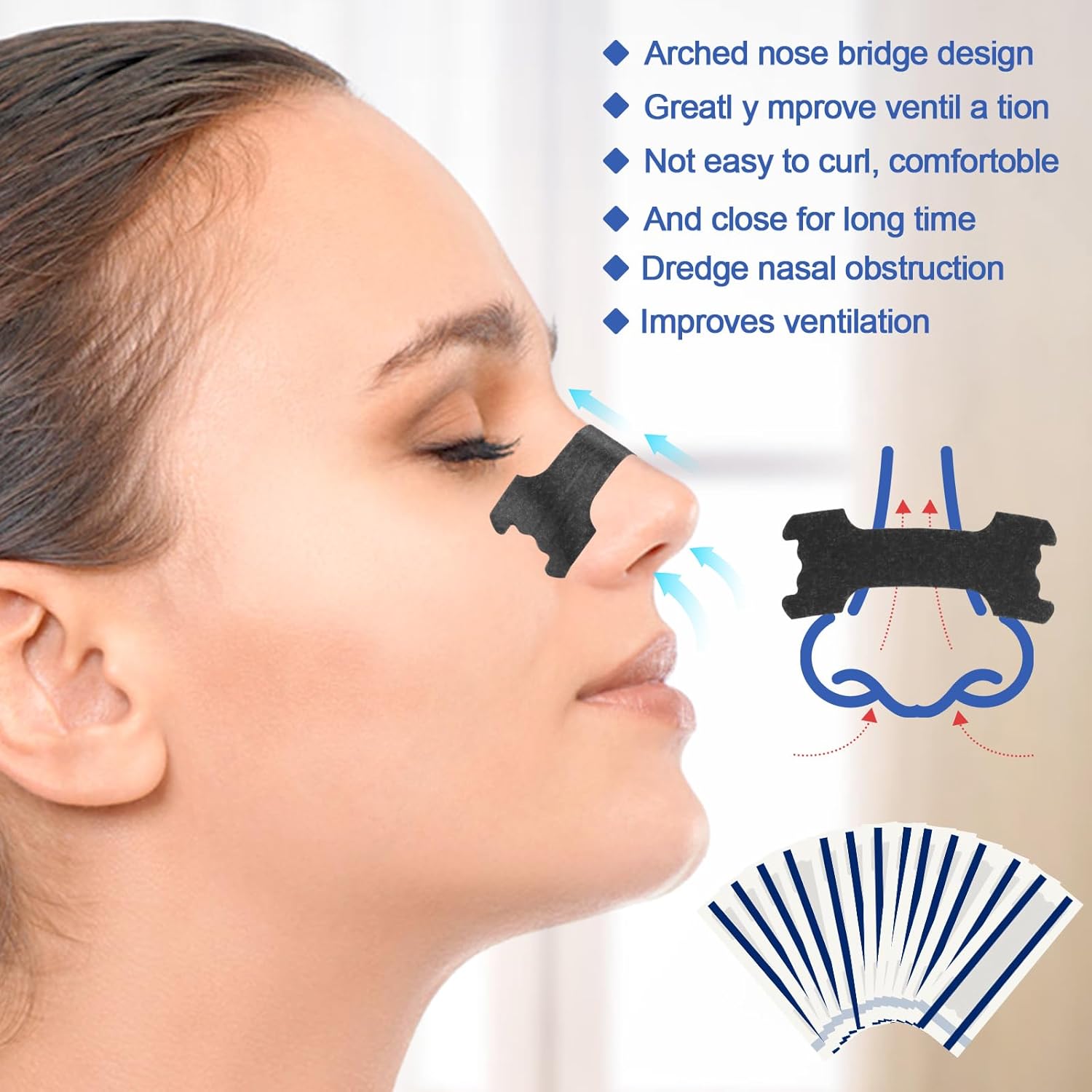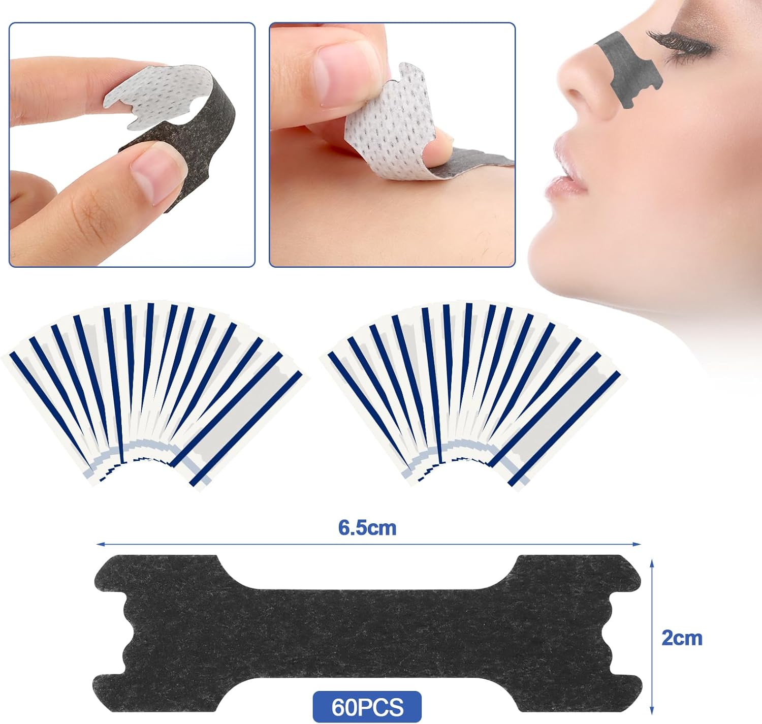 Cerotti Nasali x 60,Aiuta a Ridurre il Russare, Cerotti i Nasali,Sonno-black