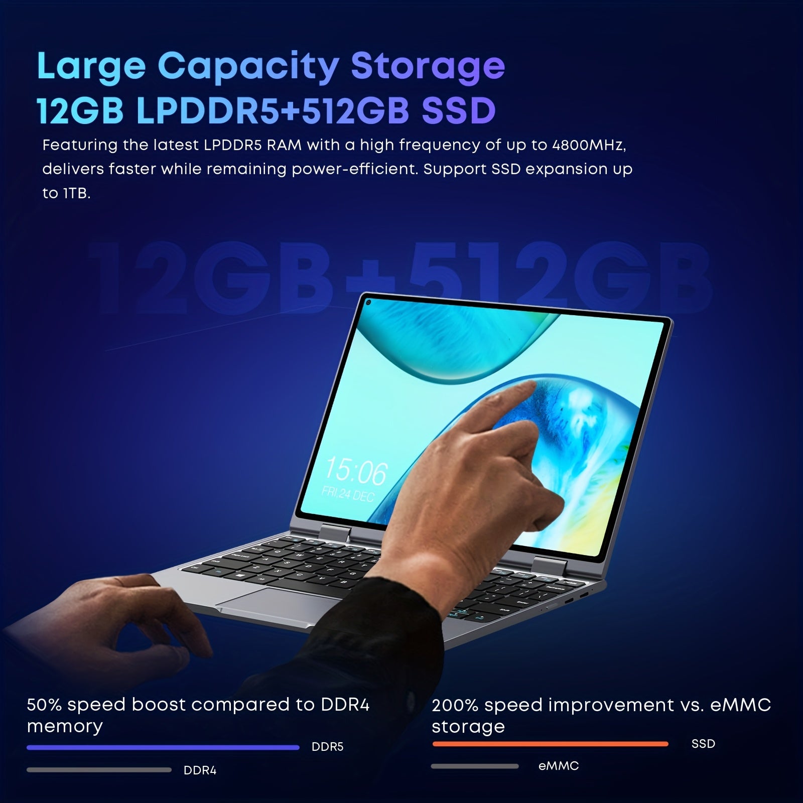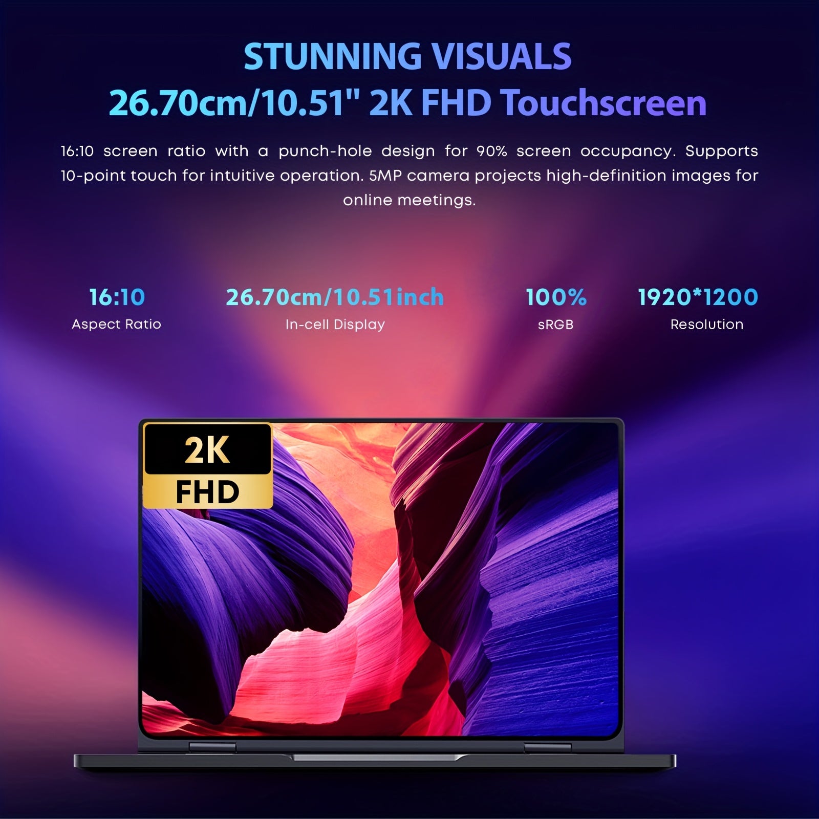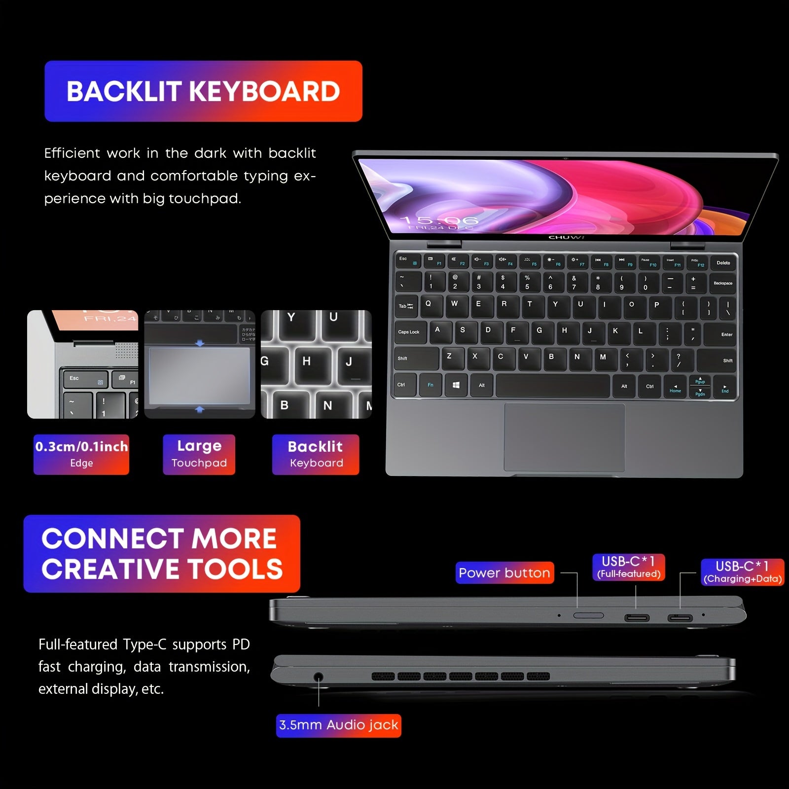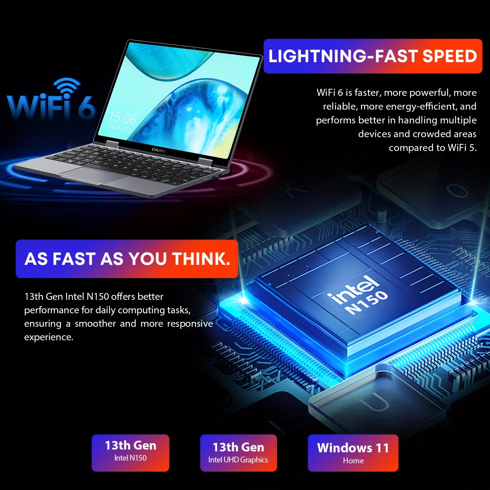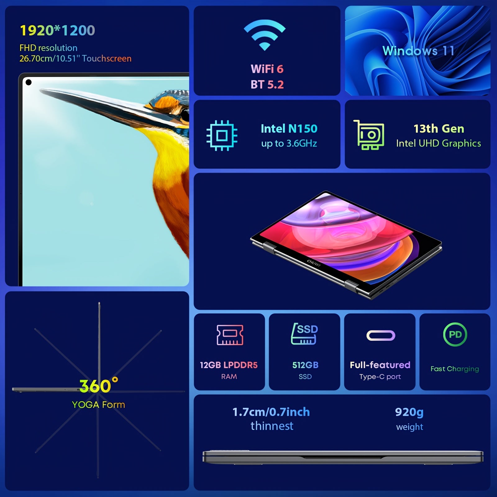 CHUWI MiniBook X Laptop 2-in-1 con Schermo Tattile Windows 11, Display IPS da 10.51'' 1920*1200, SSD PCIe 512GB e RAM 12GB, Intel N150 di 13ª Generazione, WiFi6, Tastiera Retroilluminata, Espansione SSD fino a 1TB, Tipo C, PD 2.0, WebCam, Girevole 360°, J