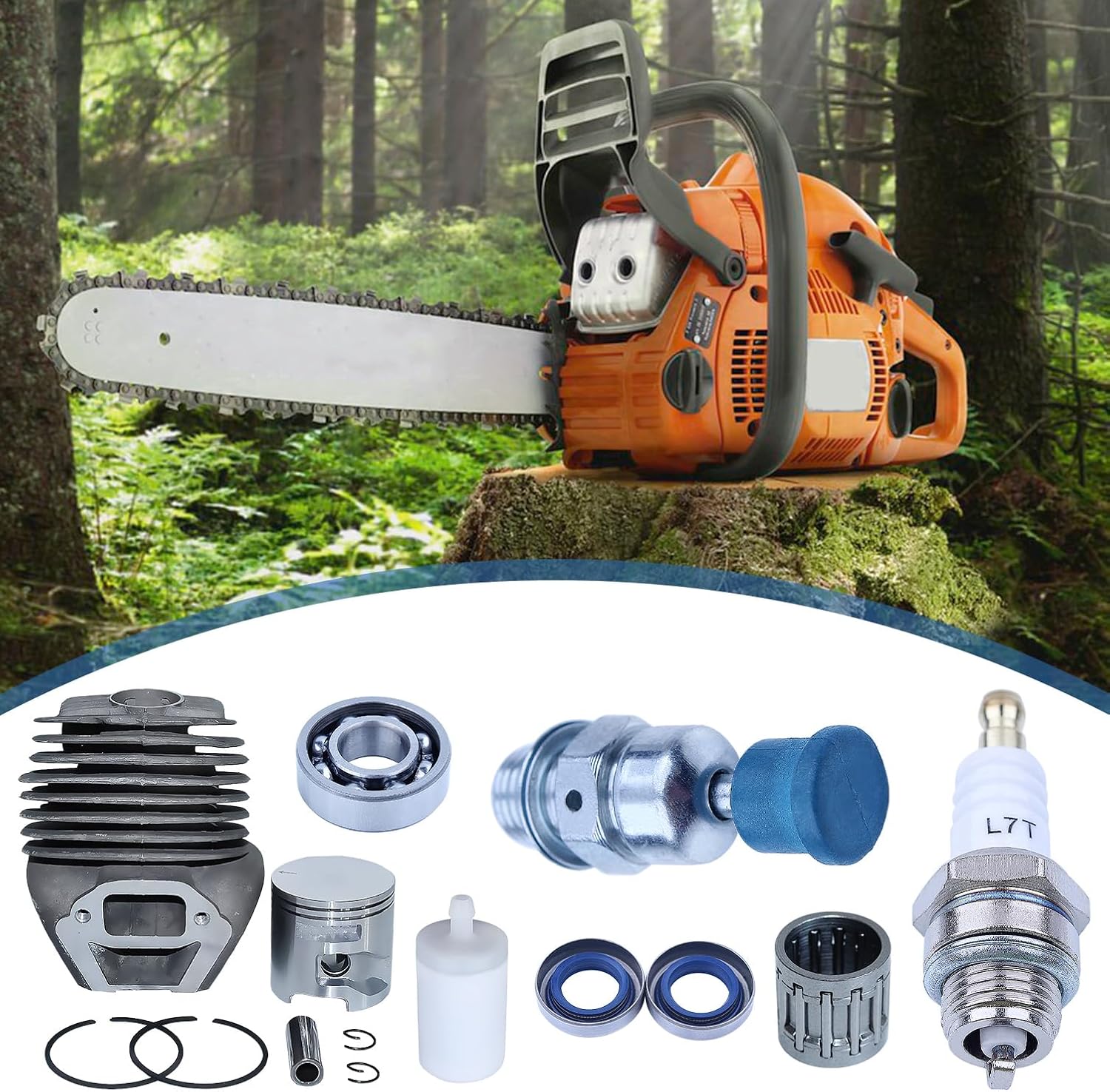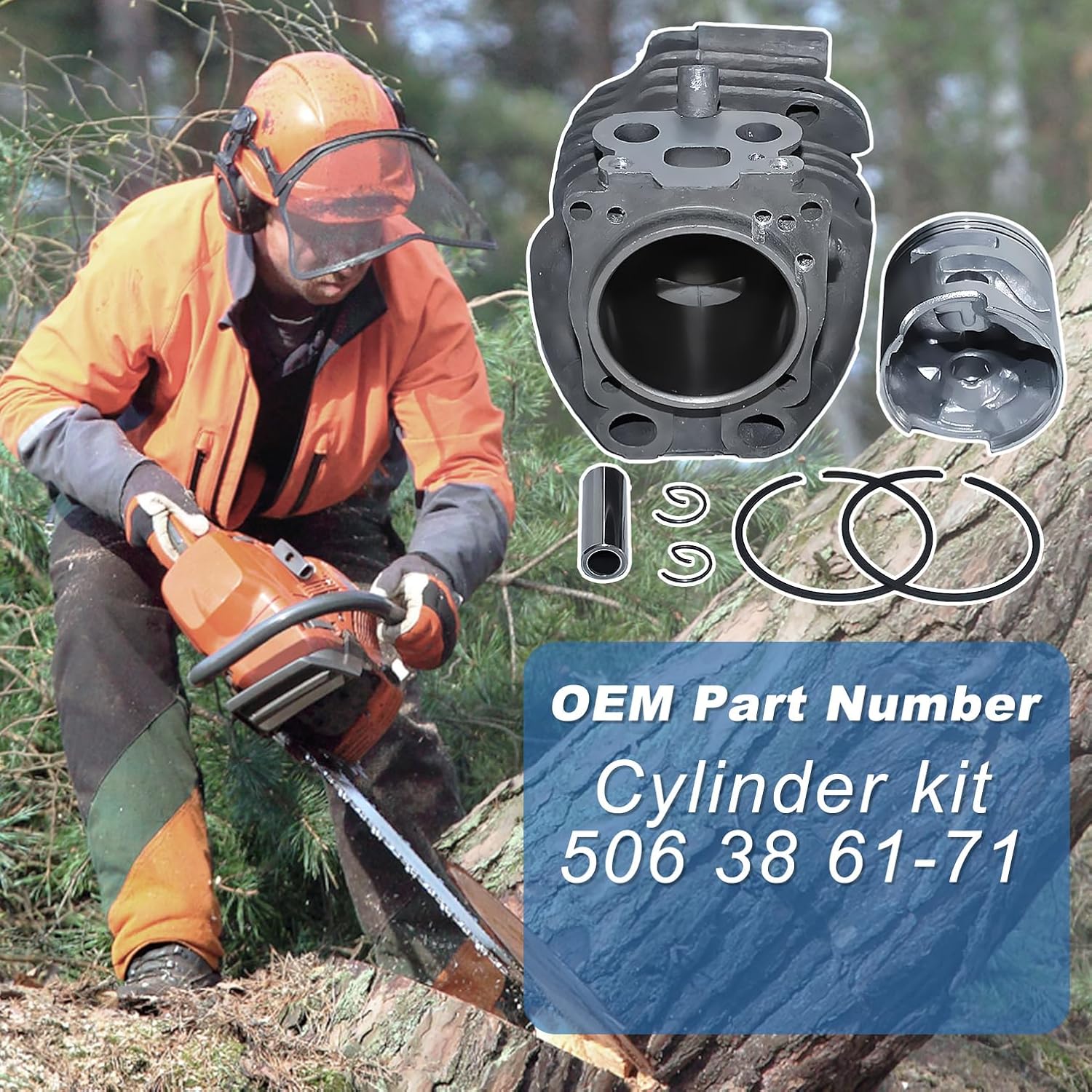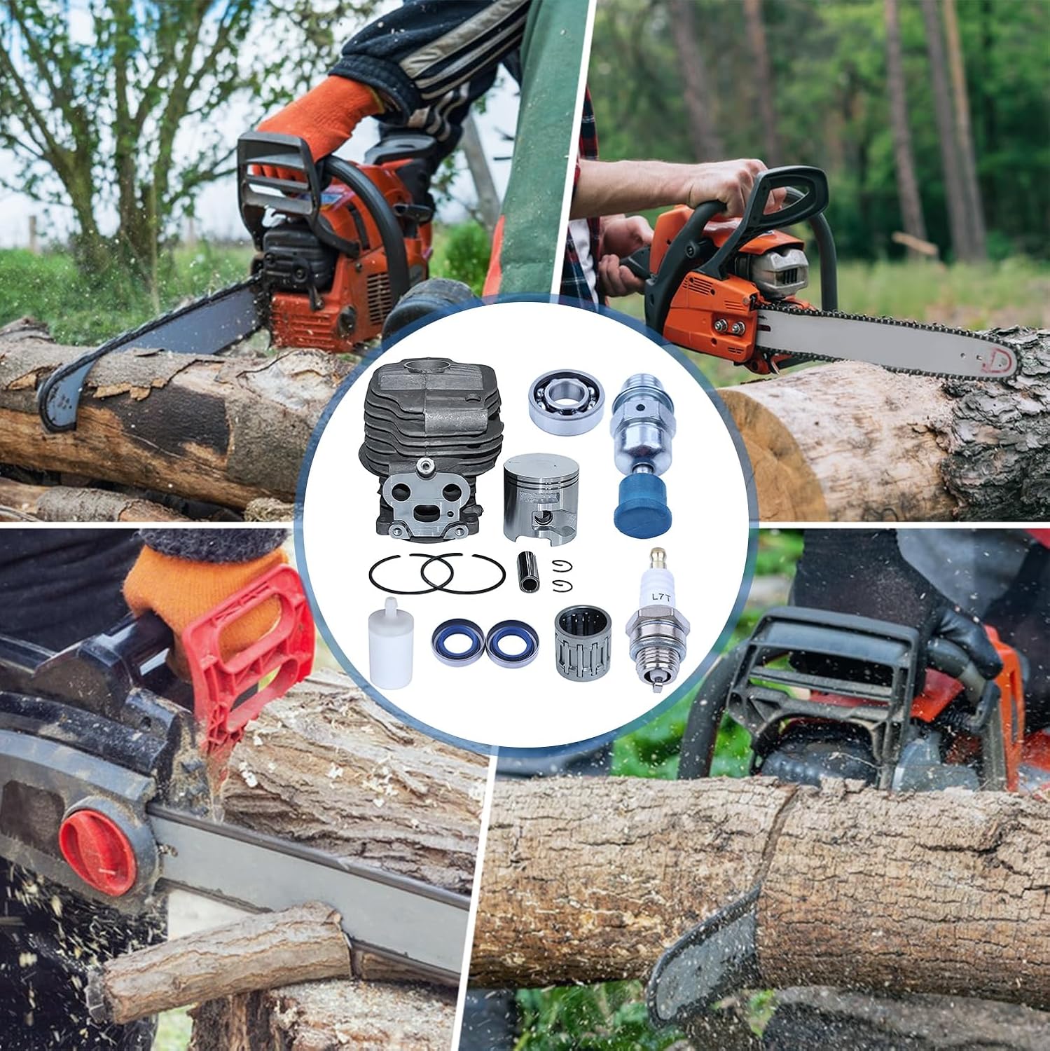 Cilindro e Pistone per Husqvarna K760 K750, AUMEL 51mm Cilindro + Pistone + Albero Motore + Cuscinetto + Guarnizione + Candela Kit Ricambi 15 in 1, Sostituire 506 38 61-71