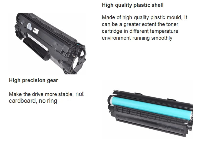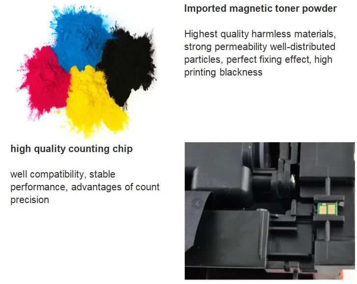 Our toner cartridge used all kinds of high quality imported raw materials, carbon powder is from the United States, OPC is from South Korea , carbon is from India, new compatible toner cartridge have a better quality and surprise effect than original.