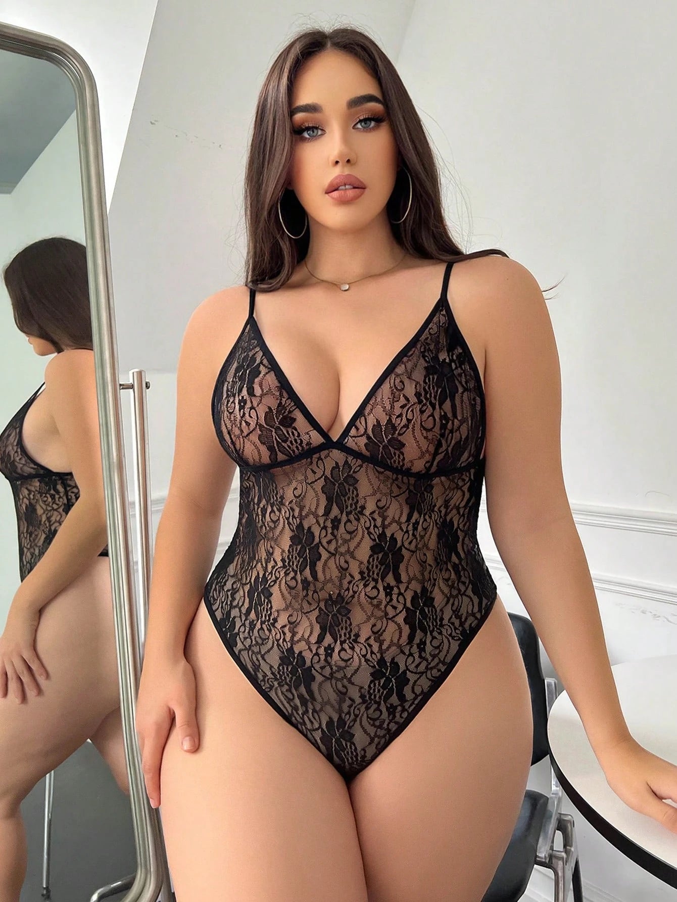Classic Sexy Plus Floral Lace Teddy Bodysuit