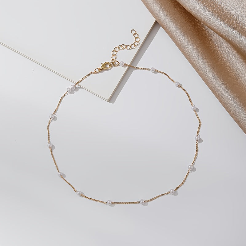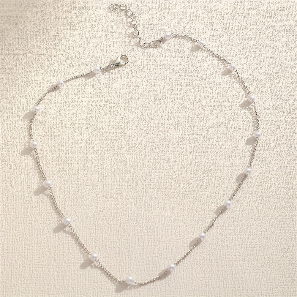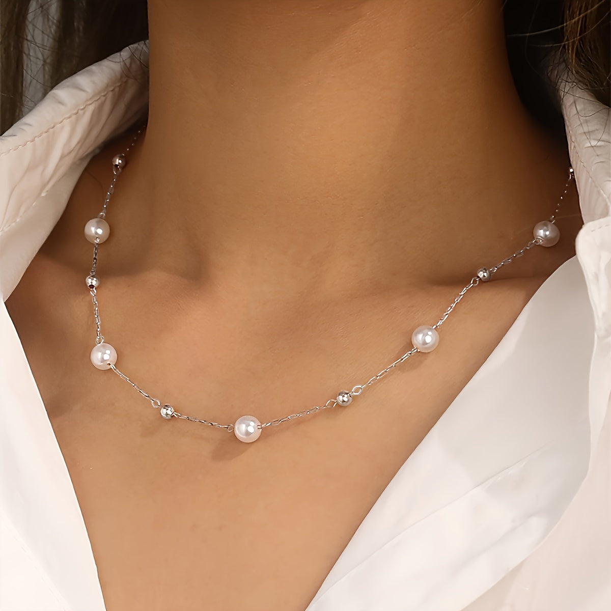 Collana A Catena Decorata Con Perle Sintetiche, Stile Semplice Da Vacanza, Collana A Collo Di Perle D'imitazione, Gioielli Casual