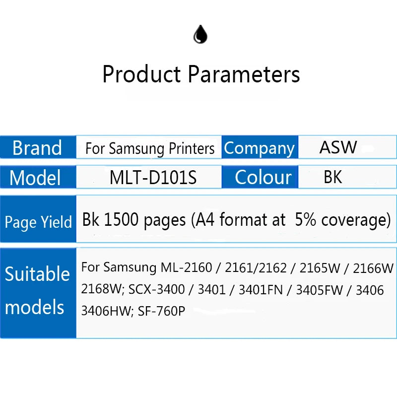 Compatible Toner cartridge MLT-D101S for Samsung d101s 101S 101 ML-2165 2160 2166W SCX 3400 3401 3405F 3405FW 3407 SF-760 SF761