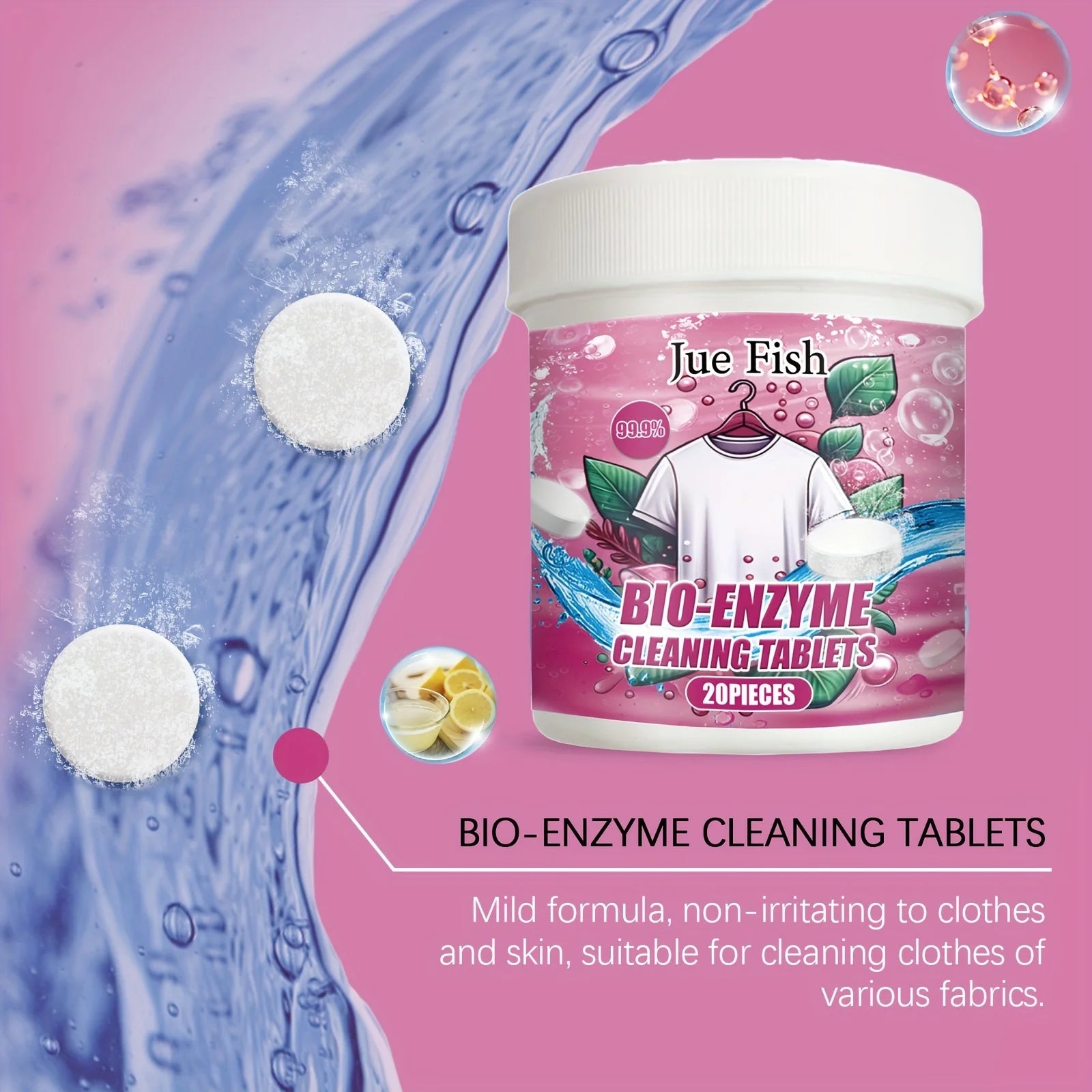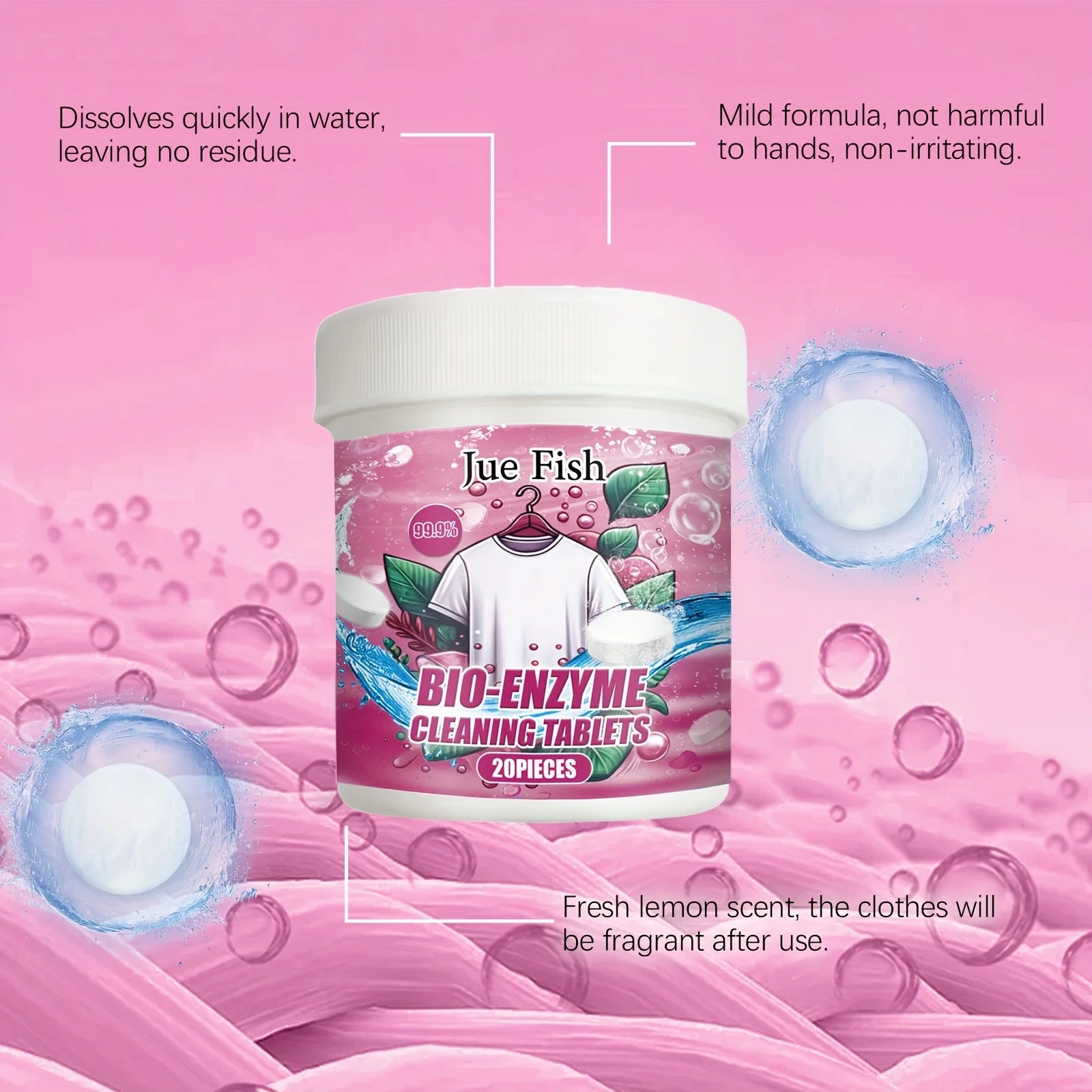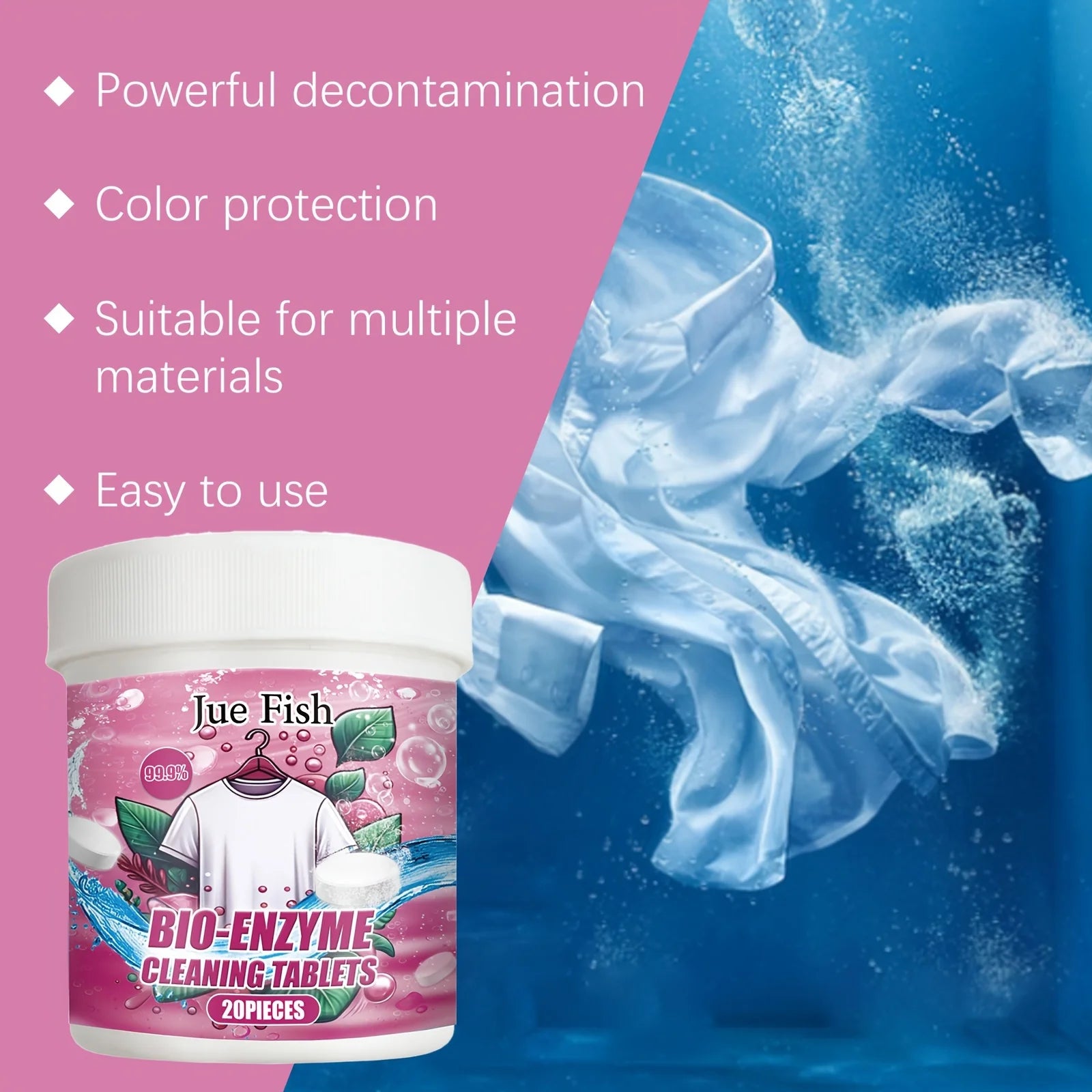 Compresse effervescenti per la pulizia del bucato con potenti smacchiatori che rimuovono rapidamente varie macchie di olio, sudore e cibo, lasciando i vestiti luminosi e nuovi.