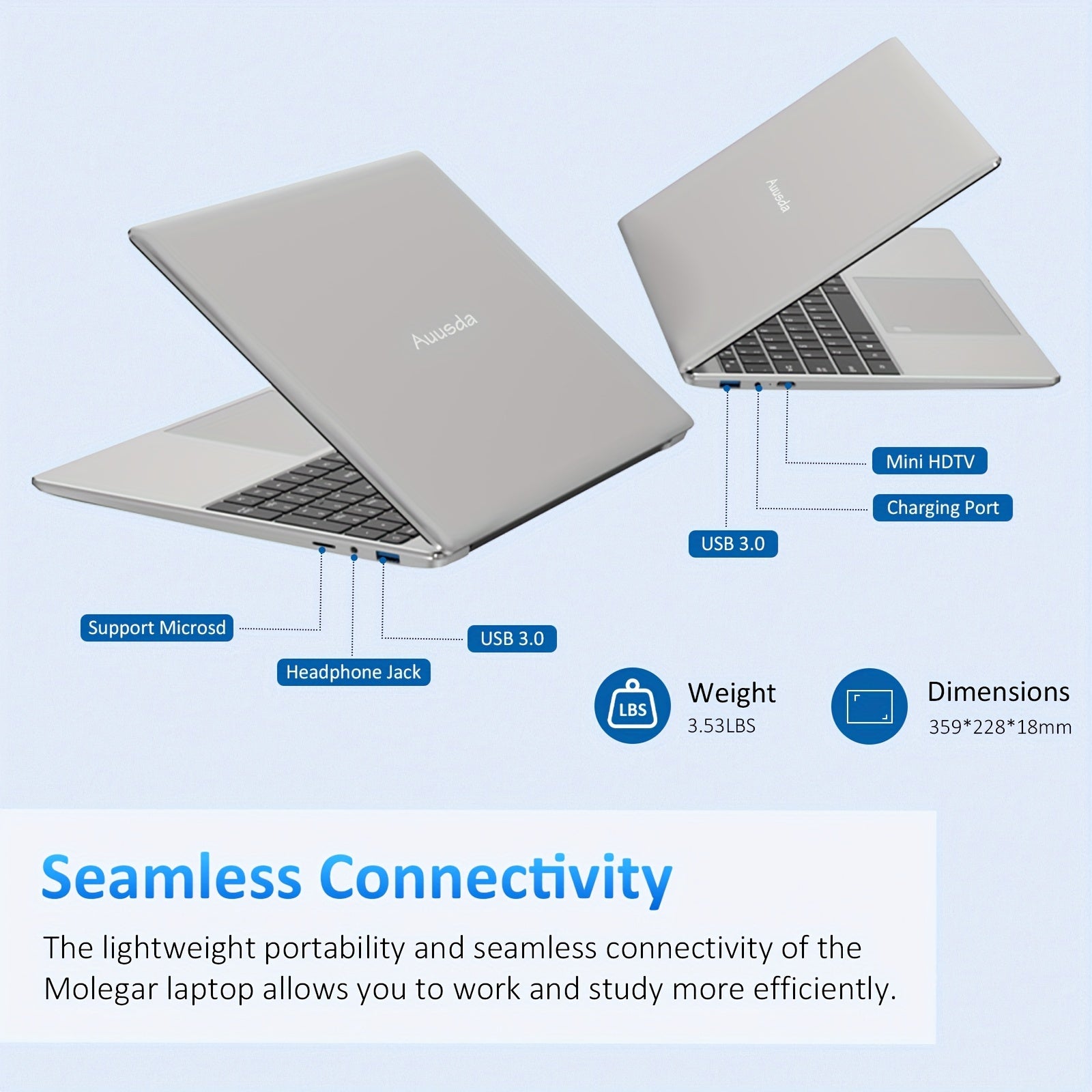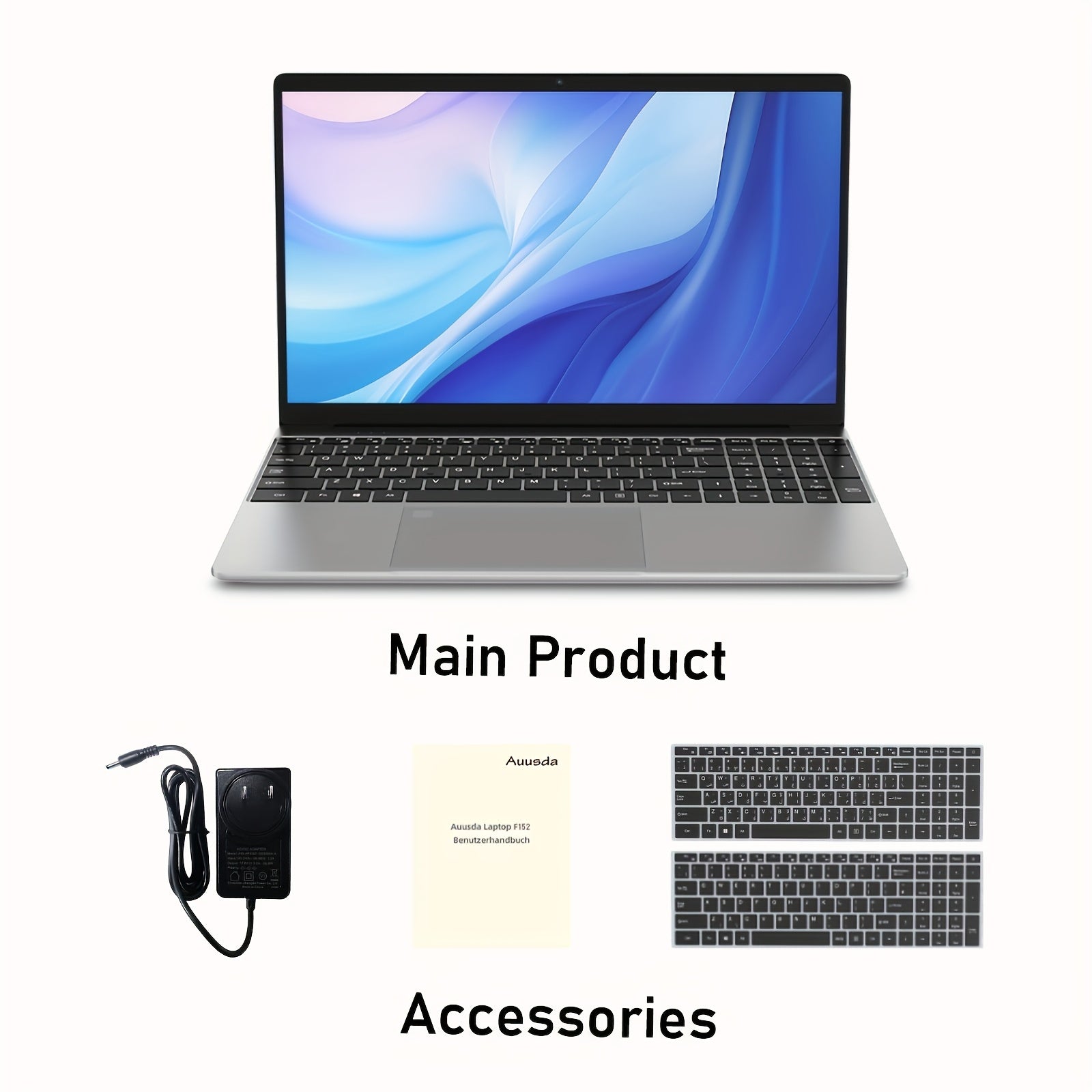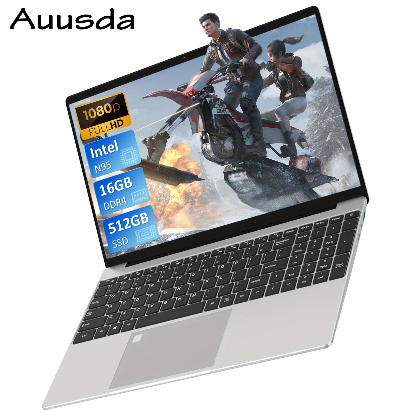 Computer Portatile Auusda con 16GB di RAM DDR4, SSD M.2 PCIe NVMe da 512GB, Processore Intel N95 fino a 2-3.4 GHz, Schermo LCD IPS FHD da 15.6", Tastiera Retroilluminata, Lettore Impronte Digitali, Web Cam, USB-A