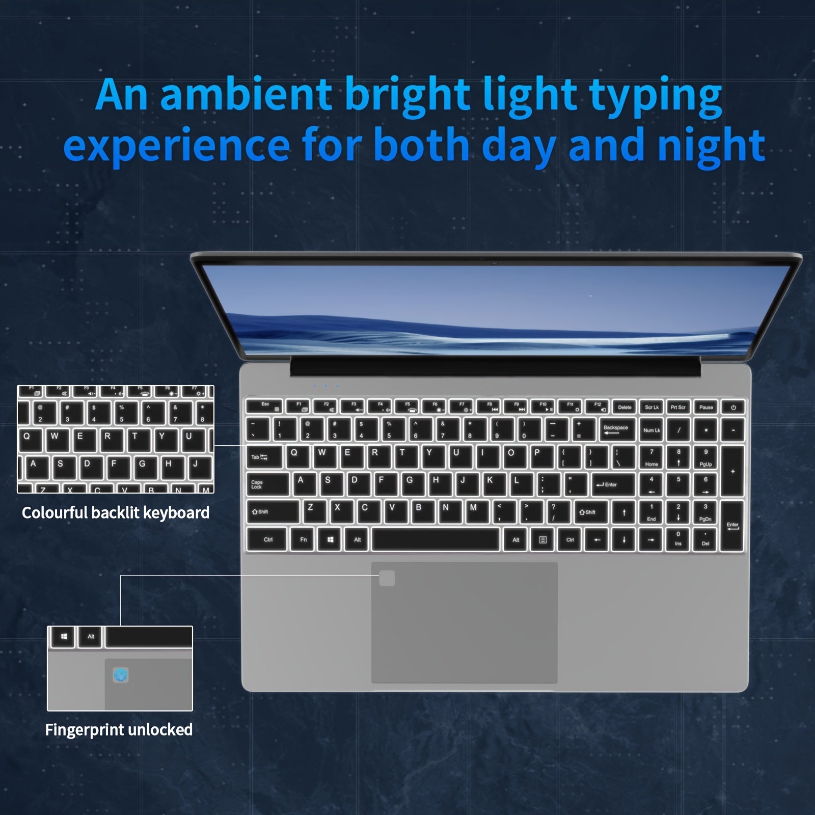 Computer portatile da 15,6 pollici, 16 GB DDR4 1 TB SSD, CPU Quad-Core Celeron N5095 (fino a 2,9 GHz), Laptop per studenti/aziende con display FHD 1080P, regalo perfetto, WiFi 2,4/5G, BT 4,2, tastiera retroilluminata (argento)