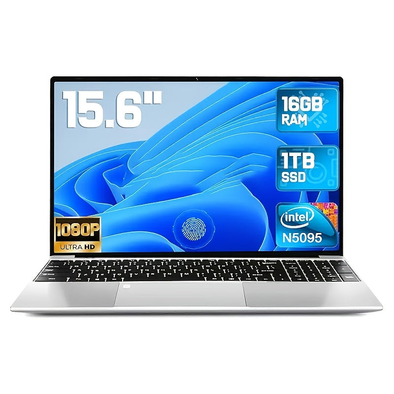 Computer Portatile Full HD da 15.6" con 16GB RAM & SSD da 1TB, Intel Celeron N5095, Windows 11 Pro, Sicurezza Impronta Digitale, Tastiera Retroilluminata, WiFi 6, Fotocamera Frontale, Doppia Batteria - Economico per Studenti e Aziende, Regalo per Amici e