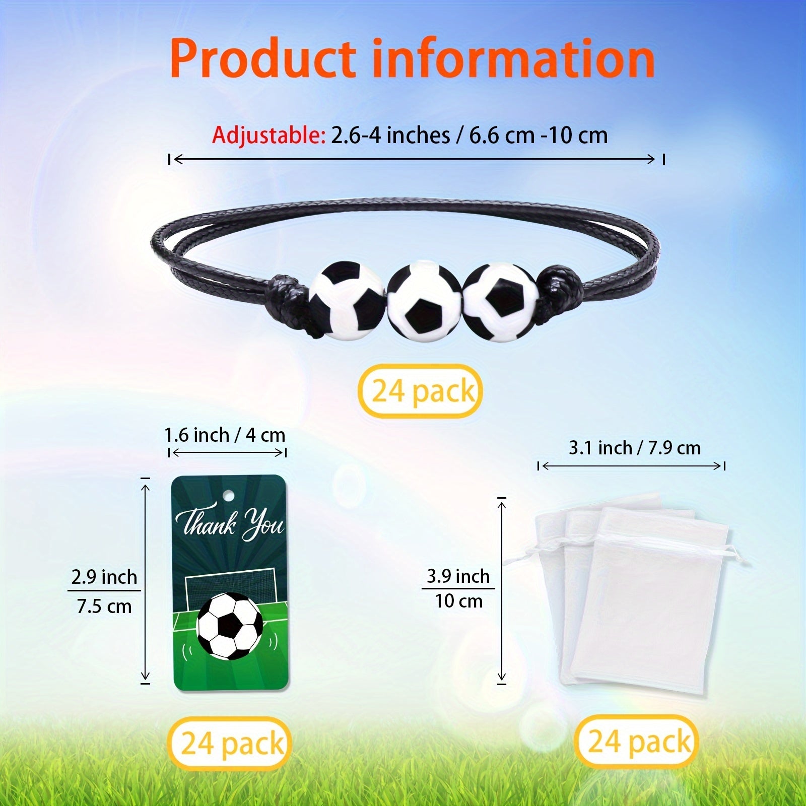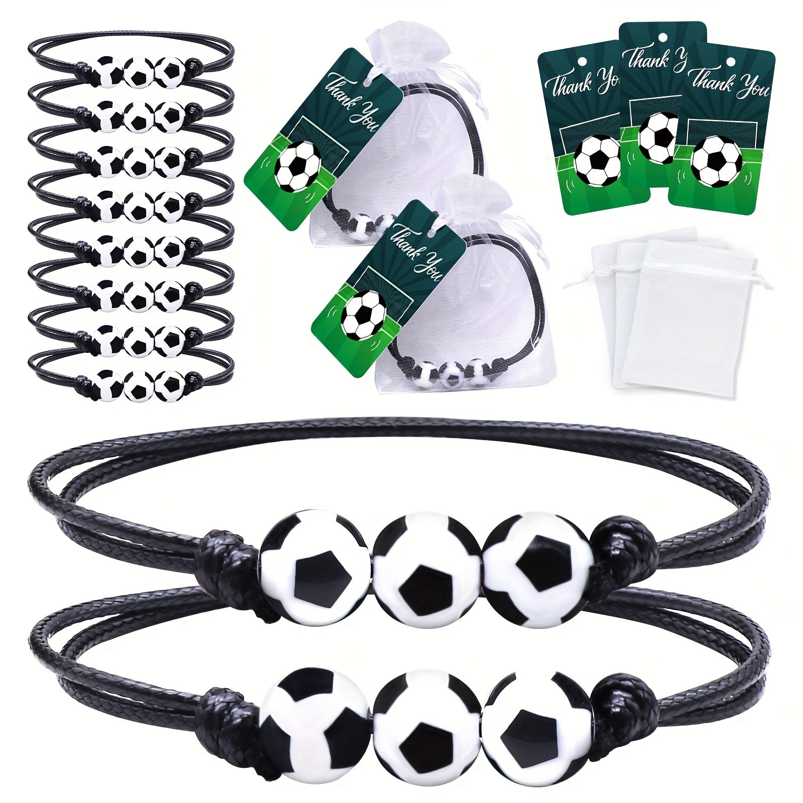 Confezione da 24 braccialetti da calcio con sacchetti con coulisse e biglietti personalizzati - Ideale per eventi a tema calcio