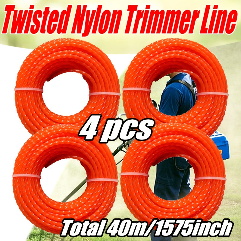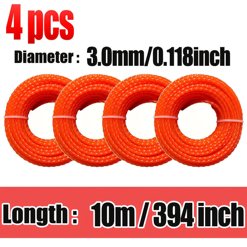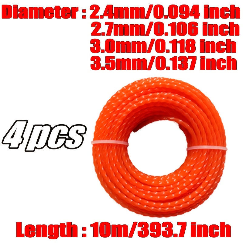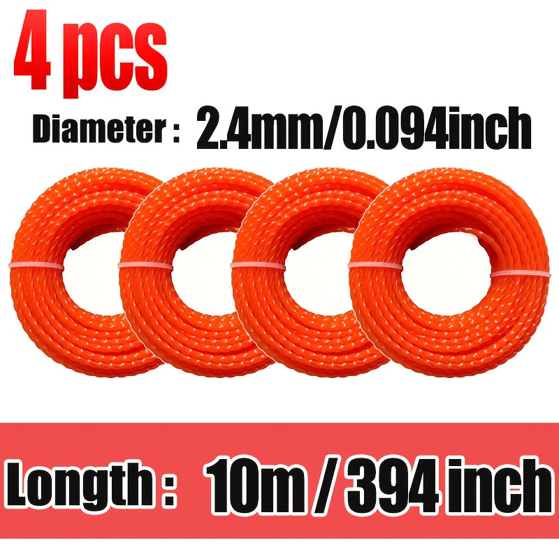 Confezione da 4 di Filo per Rifilatura Erba Resistente, Diametro 2.4/2.7/3.0/3.0 mm, Lunghezza 394 pollici, Prestazioni di Taglio Efficaci per Macchinari da Giardino, Decespugliatore a Benzina e Manutenzione del Prato