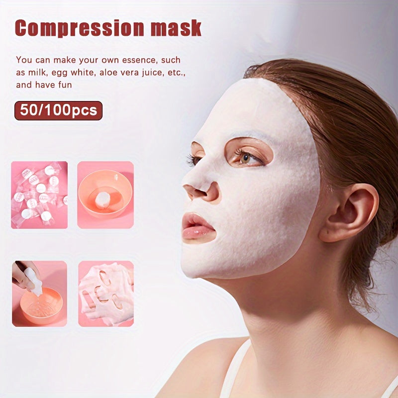 Confezione da 50/100 Mascherine Facciali Monouso Compressi - Senza Profumo, Confezionate Singolarmente, Cura della Pelle Personalizzabile con Latte, Albume d'Uovo, Succo di Aloe Vera - Pratiche per Viaggiare e Comode per Trattamenti Viso, Prodotti per la