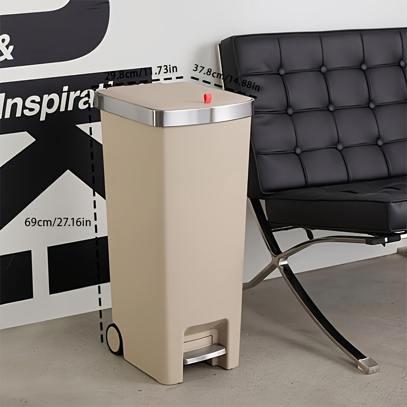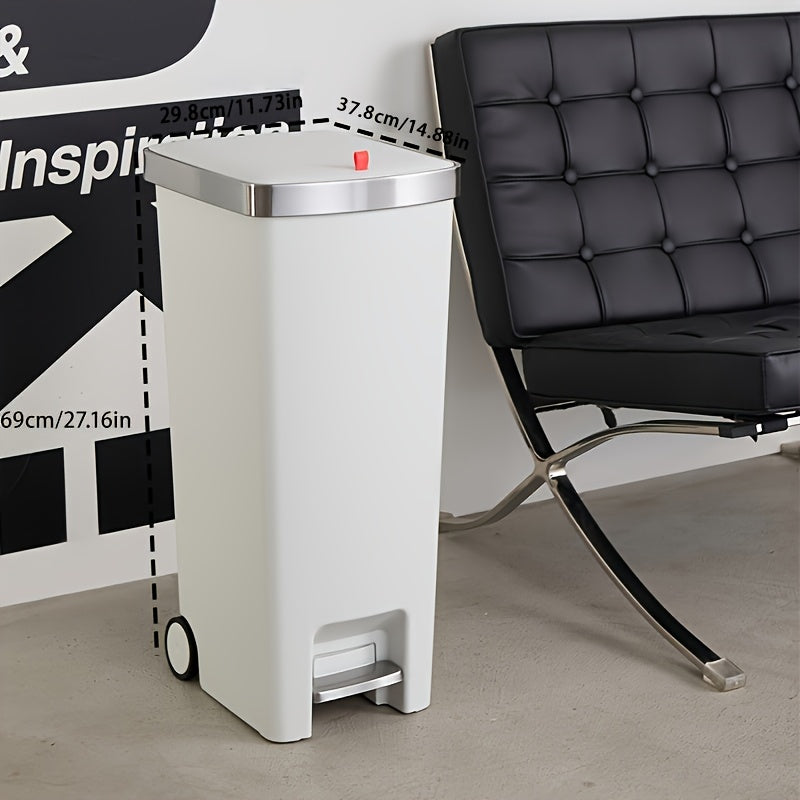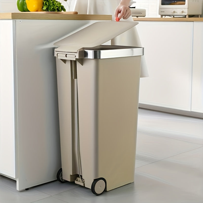 Contenitore per rifiuti con ruote da 45 litri, resistente in plastica, con pedale per l'apertura, senza bisogno di elettricità, dotato di un cestino per il riciclaggio, ideale per cucina, bagno, soggiorno e camera da letto, adatto per uso domestico e comm