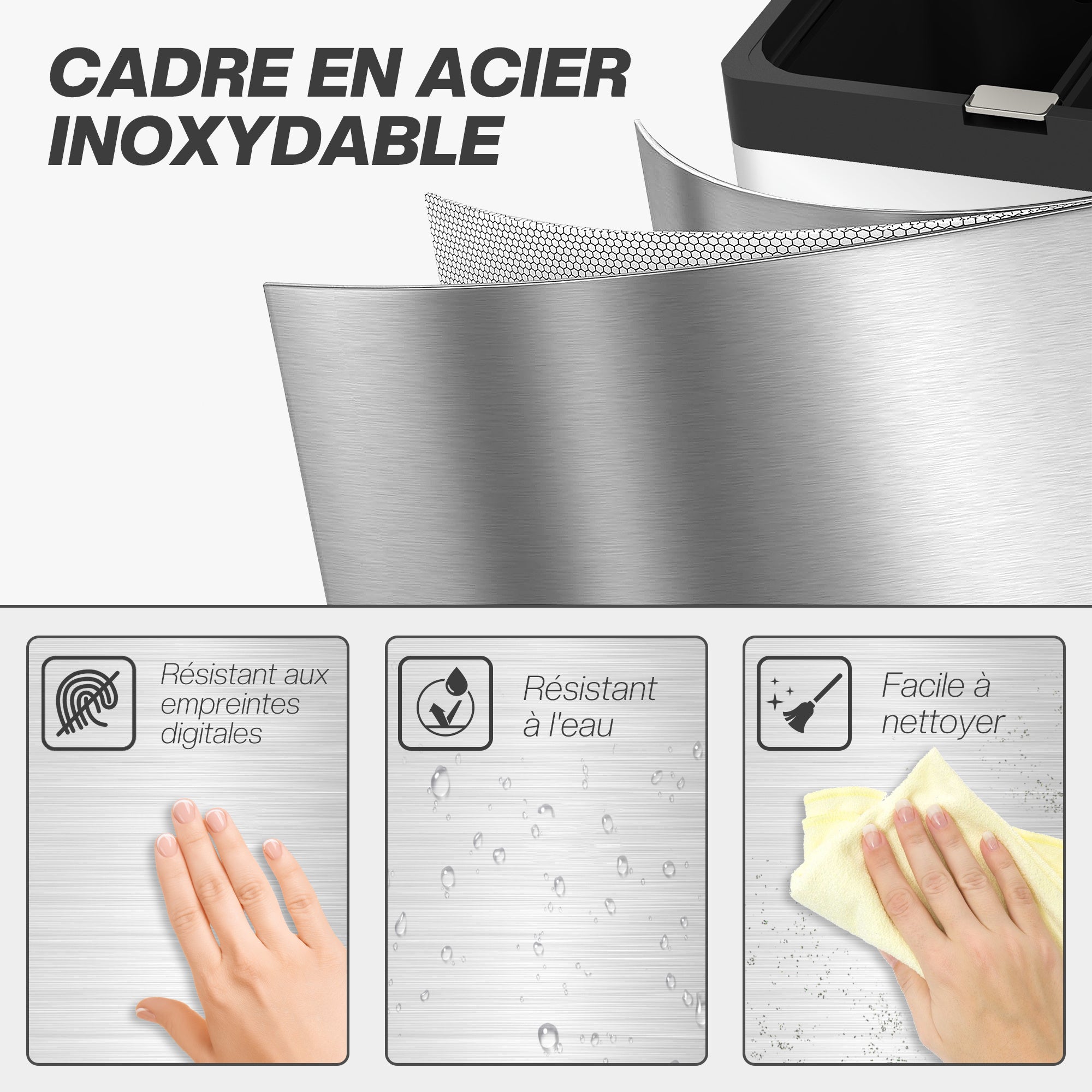 Contenitore per Rifiuti Rettangolare Homcom, 56L, Cestino da Cucina con 3 Scomparti, Coperchio Soft-Close, Ruote Antiscivolo, Secchio Interno Rimovibile, Acciaio Inossidabile, Argento