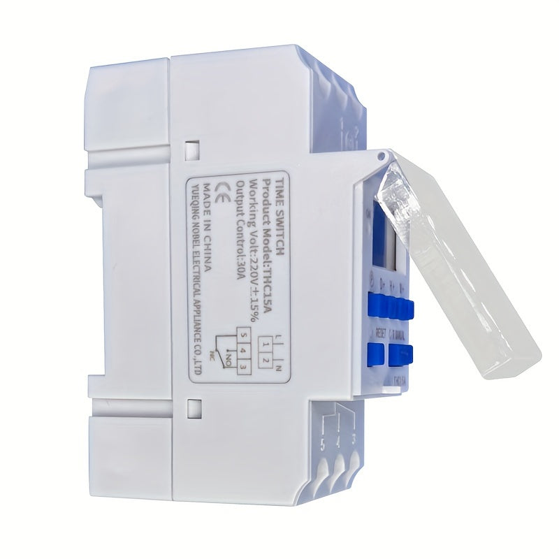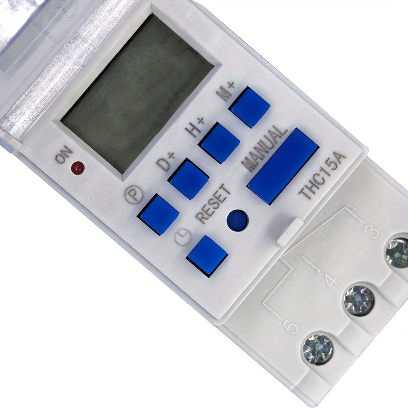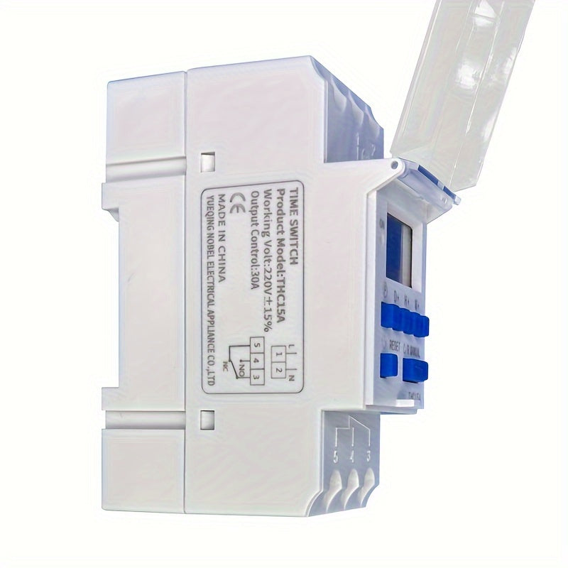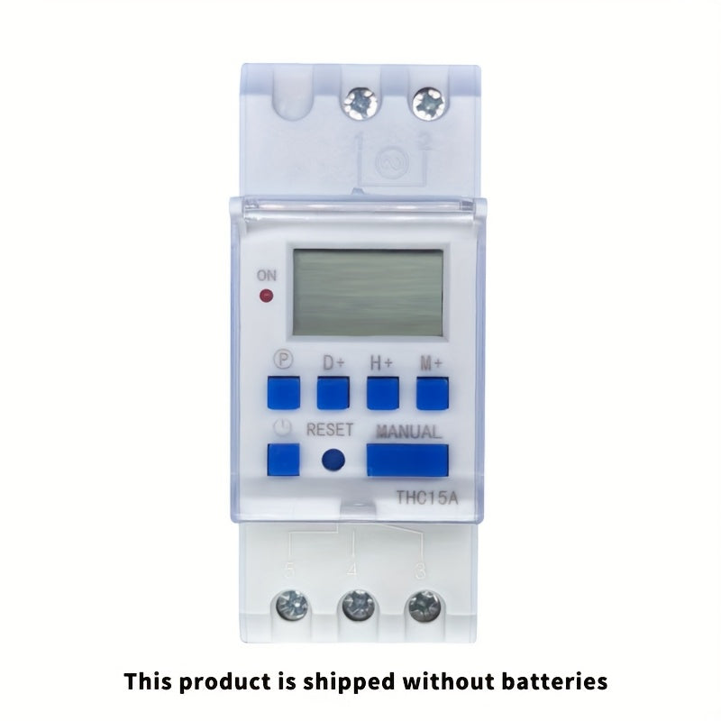 Controller di tempo programmabile multifunzionale compatto montato su binario con funzione automatica di accensione e spegnimento THC15A. Questo prodotto non include una batteria.