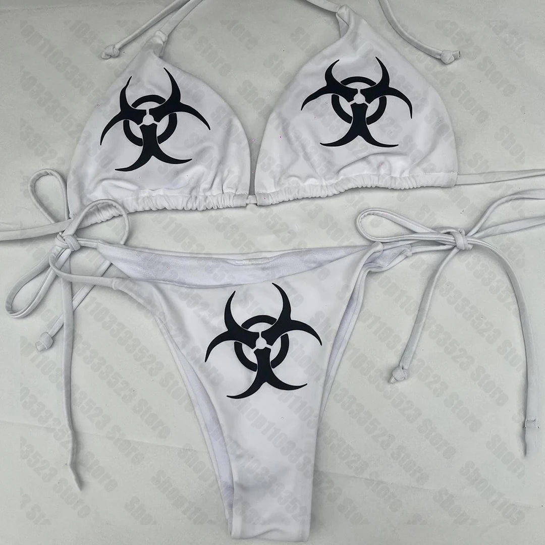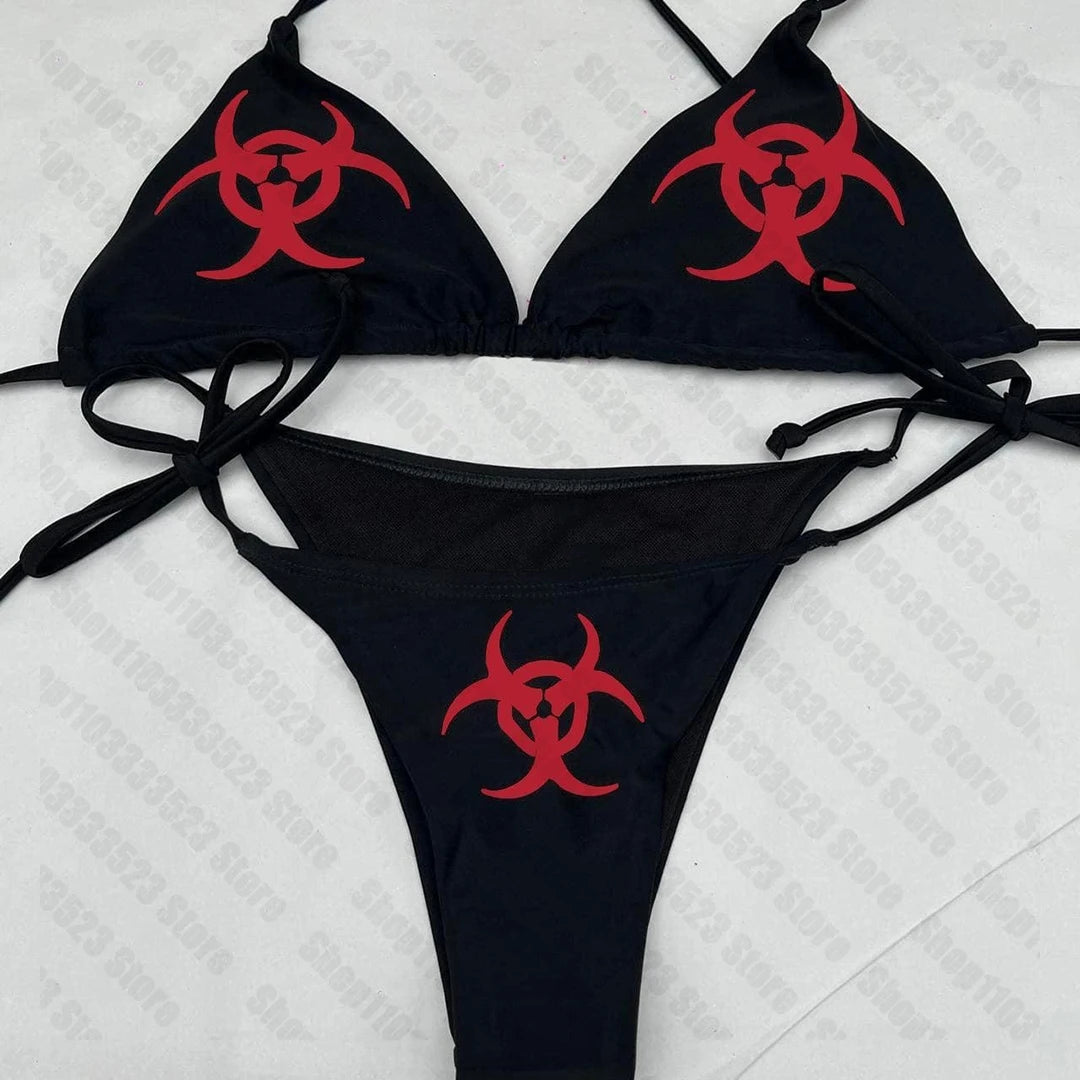 Cool girls Swimwear Women Y2k style Punk Print Bikini Set Sexy Thong Swimsuit Two Pieces Bathing Suit 2000s Gothic Bathing Suit